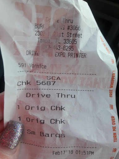 Read moreThe place has good service, but highly depends on there mood of the staff member. Also, somtimes they do over cook the food, better yet they burn it. Your whopper meat patty looks and taste more like charcoal on bread, it rarely happens but it does. So if you use the drive thru service check your food. Over time the service has improved to be honest. More recently of the times i have gone here, i do get outstanding treatment by management and staff. I have been to this location on various occasions. I do have one major issue with this place, and it really made me feel uncomfortable for the 1st time. People from the street surround this area in general. On my most recent dine in with my parents and my baby nephew, which was about a week ago. A guy from the street came in sat right next to us, and he didnt say a thing. He would not take his eyes off my mothers purse. He notice i was watching him, and started sweating. He was nervous and decide to take off and left the premises. There was plenty of sitting area and he had to sit right next to us. You go to this burger king location, pay attention to your surroundings, and be on your toes. Furthermore, the restroom was being use by people off the street to smoke. It was not pleasant, i have not return to this location and dont plan in the future. 1 out of 5, 5 being best and 1 being worst.