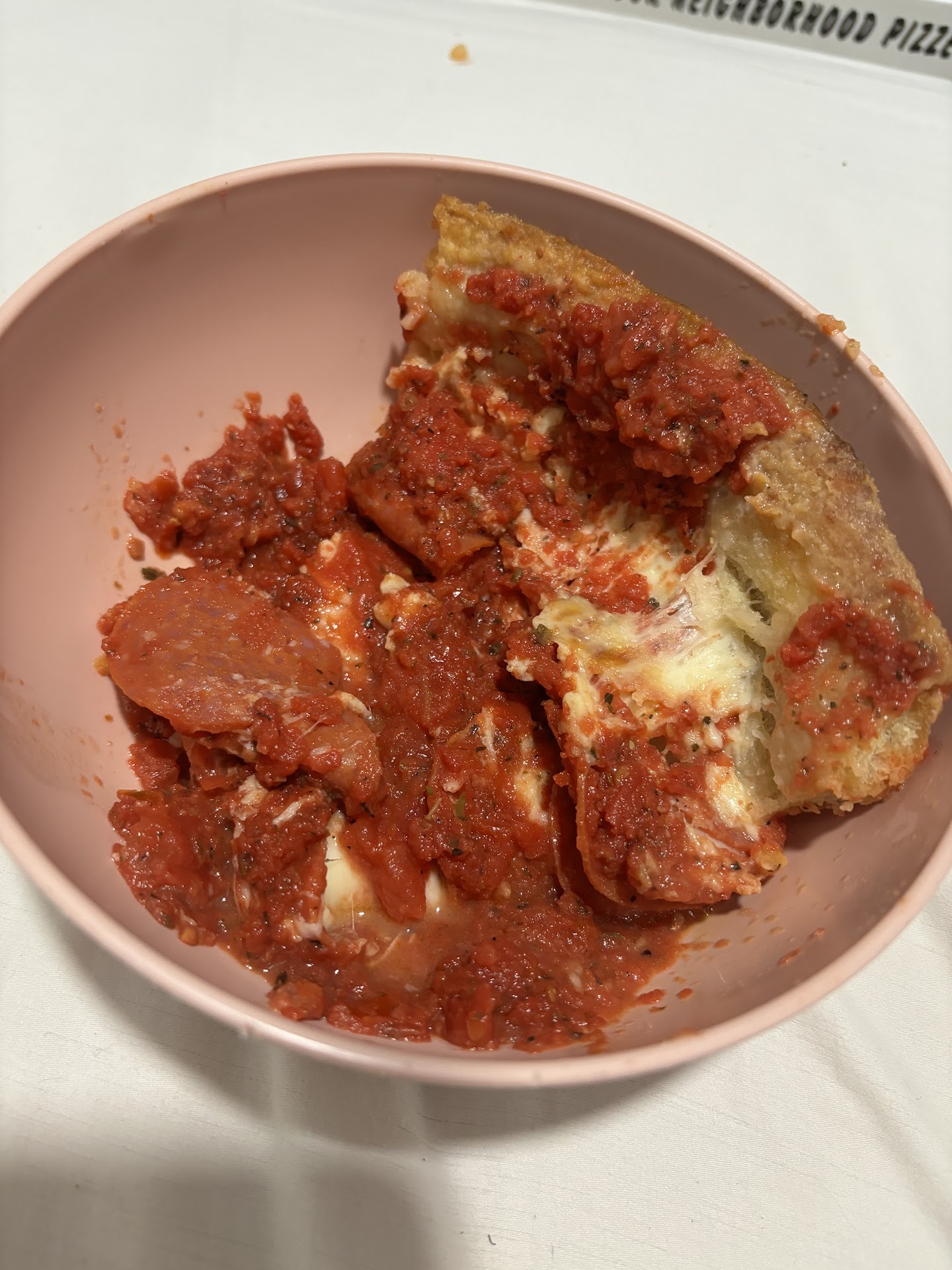Read moreSLOPPY MESS OF A PIZZA!!! Worst deep dish pizza I have ever picked up!! When we opened the box the sauce was so watery that it sloshed to one side of the pizza and we brought it back on a even car seat and a table before we opened it up so it came out of the restaurant like that! The watery sauce soaked the breading so it was literally folding over instead of being hard and crunchy like a deep dish should be!! We had to use the fork in the picture to make the sauce even all over. It was absolutely horrible and it tasted poorly made like they tried to make the sauce as quickly and cheaply as possible. Do yourself a favor and don’t come here ever again!!! I have NEVER had such horrible pizza!