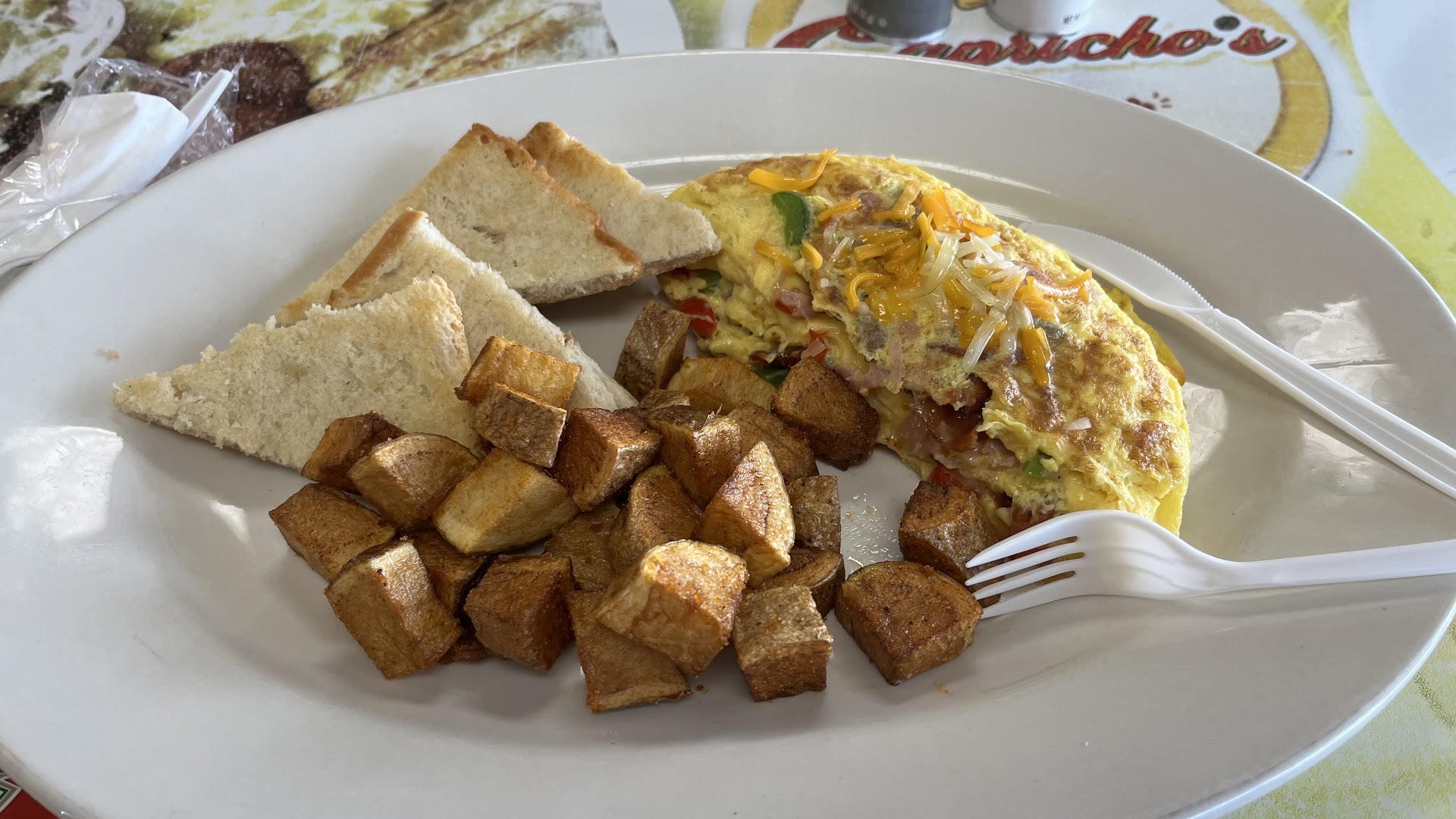 The inside is spotless and very well decorated. I was greeted by Kai who kindly took my order. At first, I ordered a meat lovers omelet with chorizo and other tasty meats. Second, I ordered a veggie omelet for me. Kai was very helpful. But then, I realized I wasn't really sure what a Dominican would eat for breakfast.