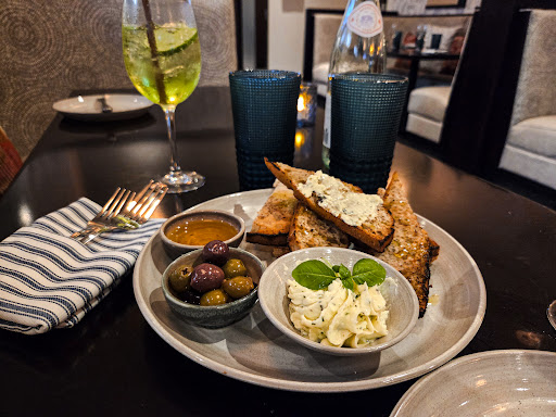 We started with the Antipasti Bread & Butter, accompanied by a delightful pair of house-made focaccia, grissini, herb-lemon butter, and chili oil. The bread was baked to perfection, with a crisp outer edge and a light, toasted center. Meanwhile, the butter and chili oil provided just the right balance of richness and flavor. While we were waiting for our main course, the chef surprised us with a crispy, Asian-inspired bite, similar to a wonton, finished with a tangy-sweet honey sauce. The honey, sourced from the local Greek consulate, gave the dish a unique and memorable touch.