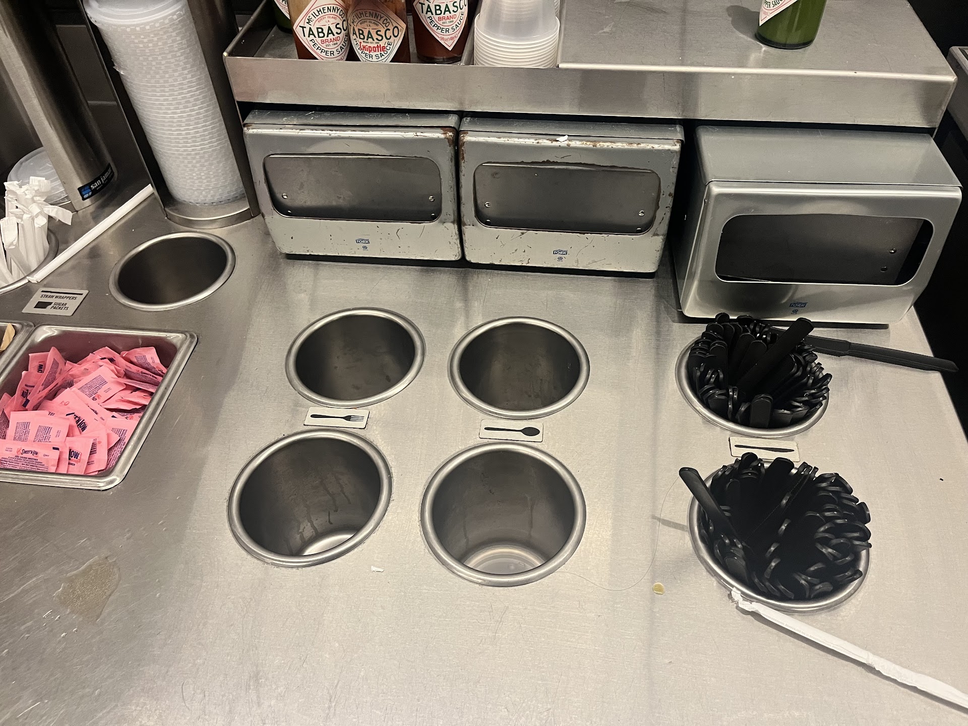 When my family and I came into the restaurant there was no line whatsoever. The manager in question was helping a family finish making their meals. As she’s finishing up, she looks around to find a worker, she then yells and I mean yells at her worker with a hijab on and starts being rude. The worker with the hijab was trying to get the front sitting area together. Which was MESS. There was food on the floor EVERYWHERE. They were empty on straws, the drink area was filthy, and each table had left over food/trash on it.