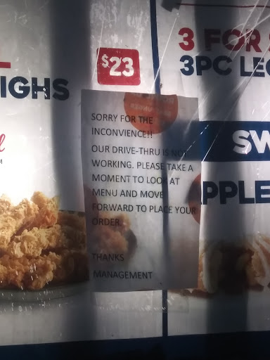 So we got to Church's Chicken to get something to eat at a little bit after 9pm. Myself my family and a bunch of other vehicles were waiting in the line as well. We were stuck in the line so we could not get out. We reach the drive-thru menu billboard at around 9:50 finally. This sign was posted sorry our menu board is out of order. Need to order at window. There was no one outside taking orders at all due to the menu board being out. About five minutes later we reach the window to order our food. A young lady approached the window which we thought was going to take our order finally. She proceeded to close the window lock it in from the inside says sorry we're closed. After sitting in the Drive-Thru for approximately almost an hour this is was the end result from Church's Chicken and this is how they value their customers. Needless to say I'm going to call their corporate office and see how they respond to this complaint. My advice is never eat at the Church's Chicken on Hillsborough Avenue because clearly they do not care about their customers or their...