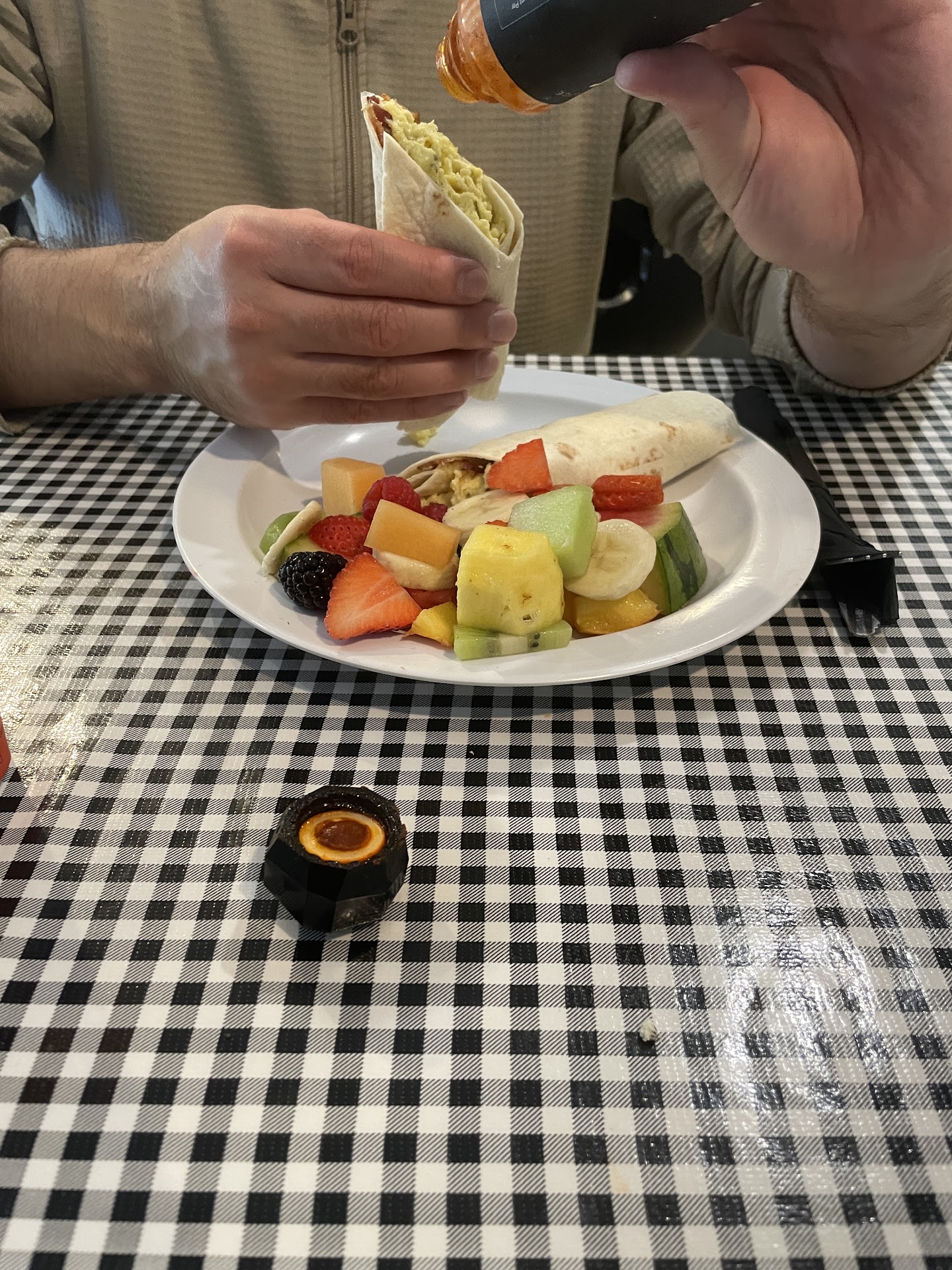 The saucer sized hand made pancakes (3 for $8.95) are thick and fluffy. The outside is firm enough to not absorb all the maple syrup, meaning each bite offers separation between the fluffy cake and sweet sauce. The accompanying house made fruit salad includes kiwi, blackberries, raspberries, grapes, strawberries, watermelon, and two other types of melon. The desserts are divine. Try a Rich Chocolate Tart or Sticky Toffee Pudding for a rich authentic British finish.