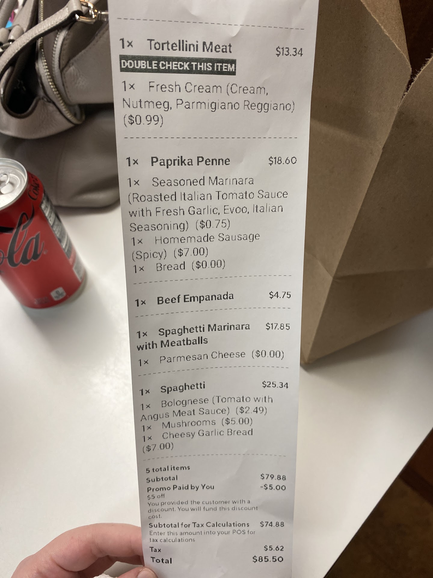 The first dish was for a child, and it was extremely salty. My child couldnât eat it. The second dish was for me. I am pregnant and giving birth tomorrow. The pasta was completely dry, as if it wasnât fresh, as if it had been sitting out for several hours and then delivered to me. This kind of food could potentially cause harm, especially to someone in my condition.