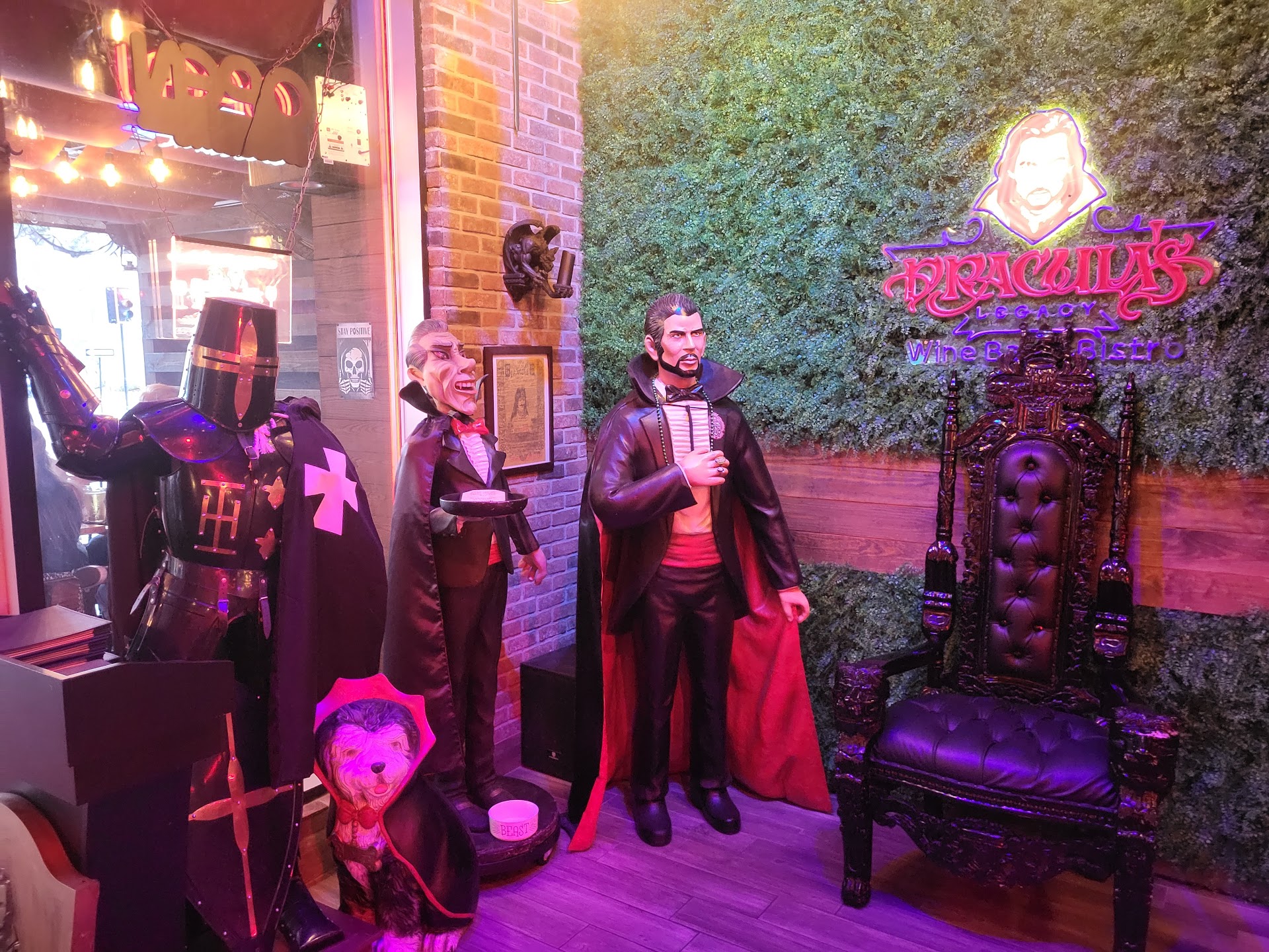 Wine Selection The wine list is commendable, featuring a good variety of reds and whites that pair well with the rich, dark atmosphere. While the prices are on the higher side, the selection is thoughtfully curated, showcasing both local and international options that wine enthusiasts will enjoy. However, when it comes to the cocktail offerings, it’s hard not to feel a bit disheartened. The well liquors are overpriced, which might leave you feeling a touch shortchanged if you're expecting the same quality as the ambiance. The drinks themselves are decent, but they don't quite live up to the enchanting setting. Moving on to the culinary aspect, the food was underwhelming, earning a solid 3/5. The menu features a couple of charcuterie boards, which, while enjoyable, lacked any standout items that would make them memorable. They serve as a decent accompaniment to the drinks but won't leave you raving about your meal afterward. Now, let’s discuss the service. Unfortunately, this is where the experience began to falter. The bar manager, or whom I assume is the manager as she was in the back the whole time and was brought out to check my parties IDs, anyhow, this manager or black shoulder-length haired worker, whose demeanor left much to be desired, could benefit from a refresher on customer engagement. While I won’t delve into unkind comparisons, her presence felt more imposing than welcoming, which detracted from the overall experience. In stark contrast, the blonde bartender provided decent service, earning a 3/5. She was attentive and friendly, which was a breath of fresh air amid the otherwise lackluster service. When combined, the service experience scores a mere 2/5. It’s a shame, as the ambiance and drink offerings hold so much potential, but the service significantly dampens the overall enjoyment. In summary, Dracula's Legacy excels in creating an atmospheric experience that’s visually stunning and offers a respectable wine selection. However, the food and service leave much to be desired. While the setting might draw you in for a night of gothic charm, be prepared for a few disappointments along the way. It’s a unique venue that could be fantastic with a few adjustments, but as it stands, it’s more style than substance. This establishment is an experience best encountered only once, destined to be relegated to the recesses of one's memory, save for those rare occasions when all other options are regrettably unavailable and one is left with no choice but to revisit this...