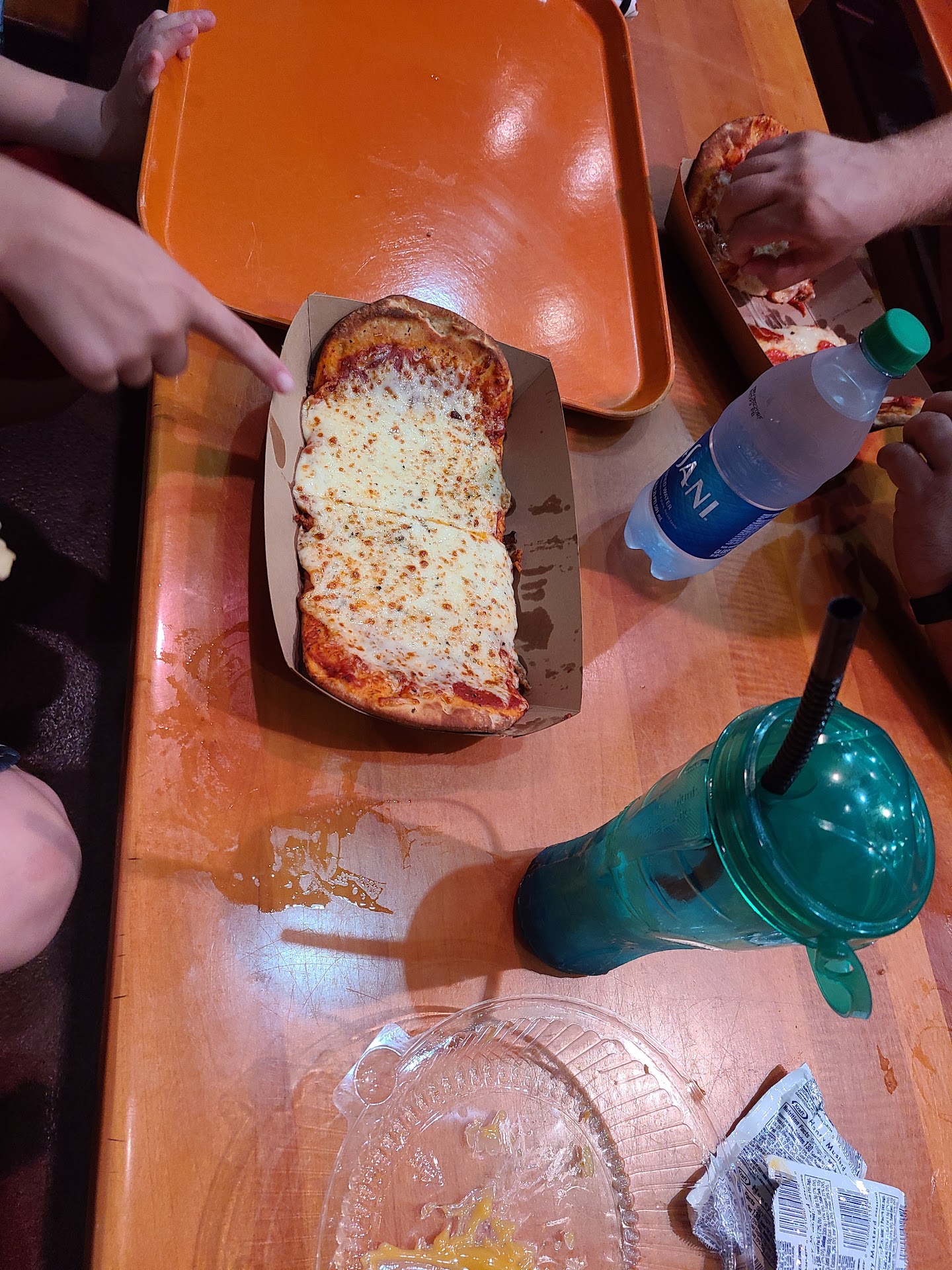 The air conditioning makes it worth coming to the specific Restaurant. They have chicken wings here they have French fries they have hamburgers and they have pizza. I know they have other options as well but the place had a lot of people getting in lot's of different places. So I just tried to squirrel my way round people to get what the kid's wanted .... Because they were driving me insaneš. They were hungry and when they're hungry My husband and I get one way tickets to frownville's.