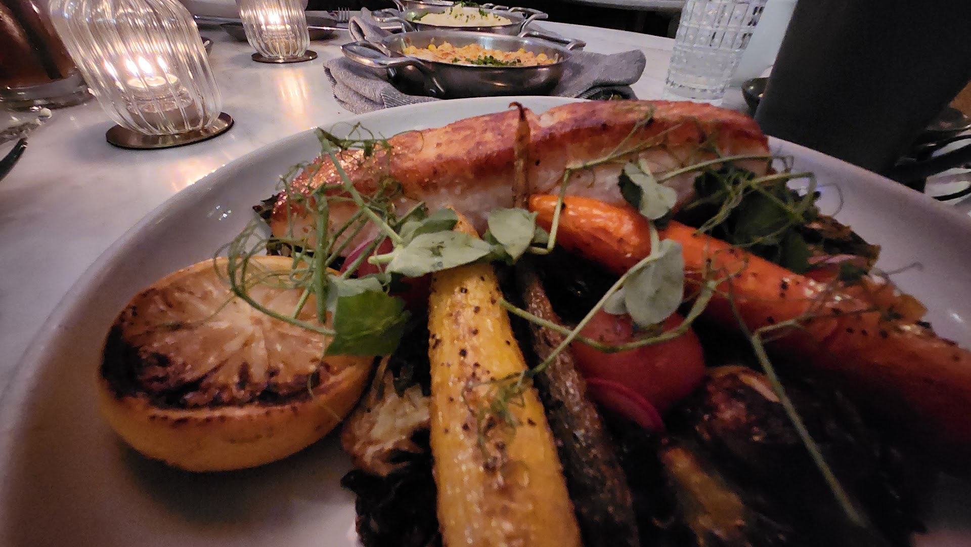 Read moreLike coming out of a wood fire oven in a snow-capped mountain cabin, the pumpkin quad buns welcomed the sweet decadent butter as a hug from an old friend. This was just the beginning of nothing less than a spectacular dining experience at the JE Marriot Driftlight. This marvelous meal was accompanied by creamed corn, a perfect mixture of sweet encrusted by a tastfull cheese crust. The cream spinach was just spectacular and to round off this applaud worthy appetizer trio was a gift of mashed potatoes that had to come from a century old family recipe made from Love. The crown of this meal, which could be served to royalty , was the most perfectly prepared salmon I have had in a very long time. The flavorful skin cracked with a fork to reveal flaky moist salmon masterfully cooked. Surprisingly the accompaniment was just as stunning, a bed of warm grilled vegetables provided delicious flavor with every bite, contrasted with cold cherry tomatoes that exploded with flavor. This meal was truly a culinary masterpiece worthy of a Michelin star. Happy belated birthday to Chef Gaeyon thank you for sharing your love and passion. Not to be outdone Shizhana provided presidential level service and an emotional connection with our dinner party. I could not complete this review without mentioning the consistently amazing breakfast that we visit almost weekly. The mango chicken sausage is the star along side a breakfast bread pudding, there is a custom omelette station and almost anything else you could desire. Again the only thing better than the buffet is the remarkable team, if you want to enjoy dining where you are appreciated, valued and welcomed as family, this...