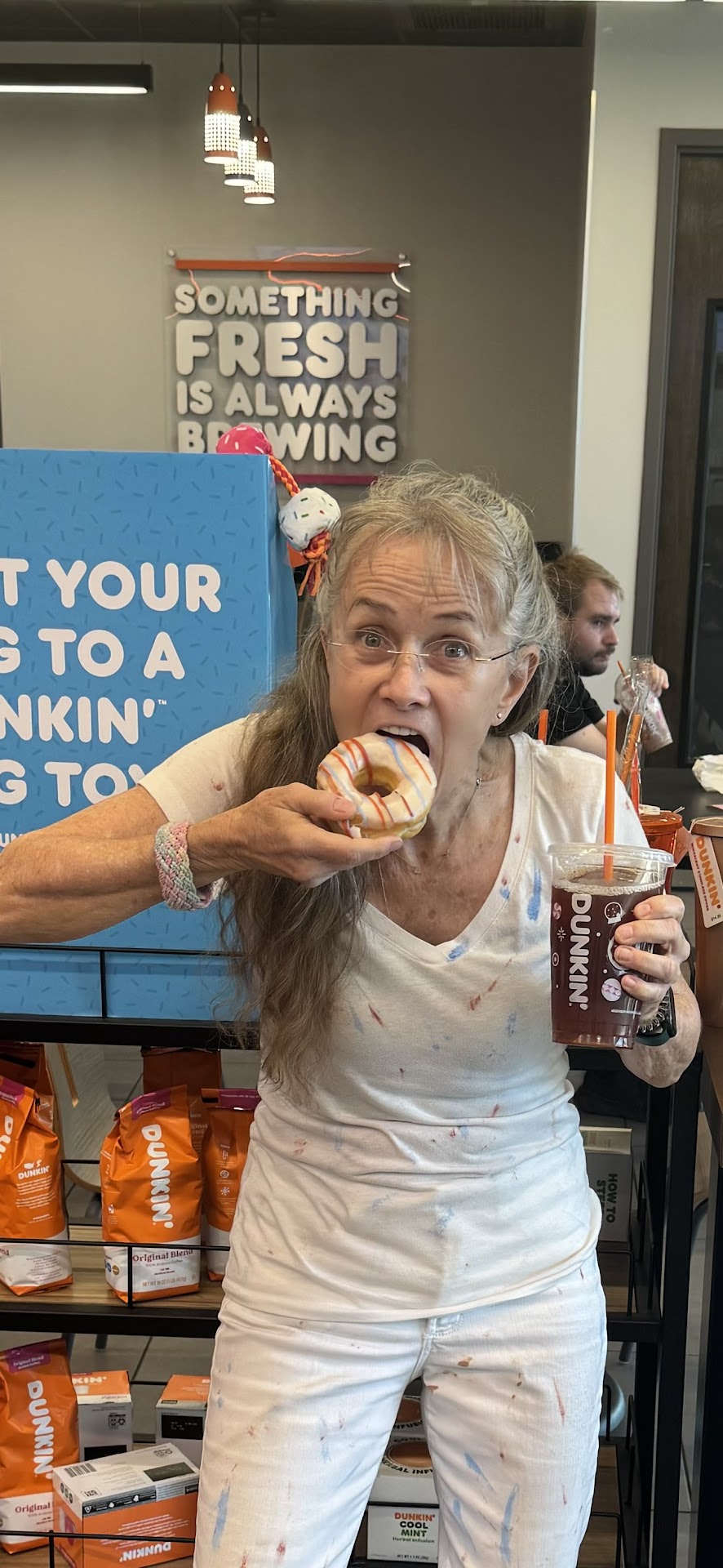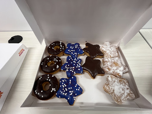 Read moreThis is one of the newer Dunkin' places. I love the cold drinks on tap and ordered a brew ice tea with perfect strength and flavor. Theresa and Quisha gave great fun service. I went back for the red white and Blue donut. Yum. Truly Dunkin has best donuts Miriam offered great service. Music is contemporary and not too loud. Love the free wifi no password. Everything is wheelchair accessible except bathroom and entry doors are not automatic. No diaper changer. Indoor bar seating and tables. Outside tables are along busy Kennedy Avenue. They offer dog toys and treats, bagged ground coffee, kcups, and mint infusión and various travel cups. Pepsi products. Kid friendly? Did i say donuts! Their Charity is Joy in Childhood Foundation menus are fairly readable indoors. Drive thru menu is larger letters. Great app with weekly...