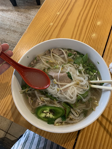 We started with the fresh roll, most Vietnamese restaurants have 2 per order, this had only one at a price more expensive than some weāve been to. I had the beef pho and my husband had the chicken. My husband Jim sliced beef was slid into the hot broth uncooked and turned out delicious. The condiments were placed inside the bowl upon delivery to the table which was ok but I donāt like jalapeƱo peppers in mine to change the flavor of the broth, so they were quickly removed. my husbands chicken pho broth had good flavor, the chicken was in large chunks, dry and āoldā tasting. Most was left behind in the bowl. Overall if we were downtown and in the mood for Pho would maybe...
