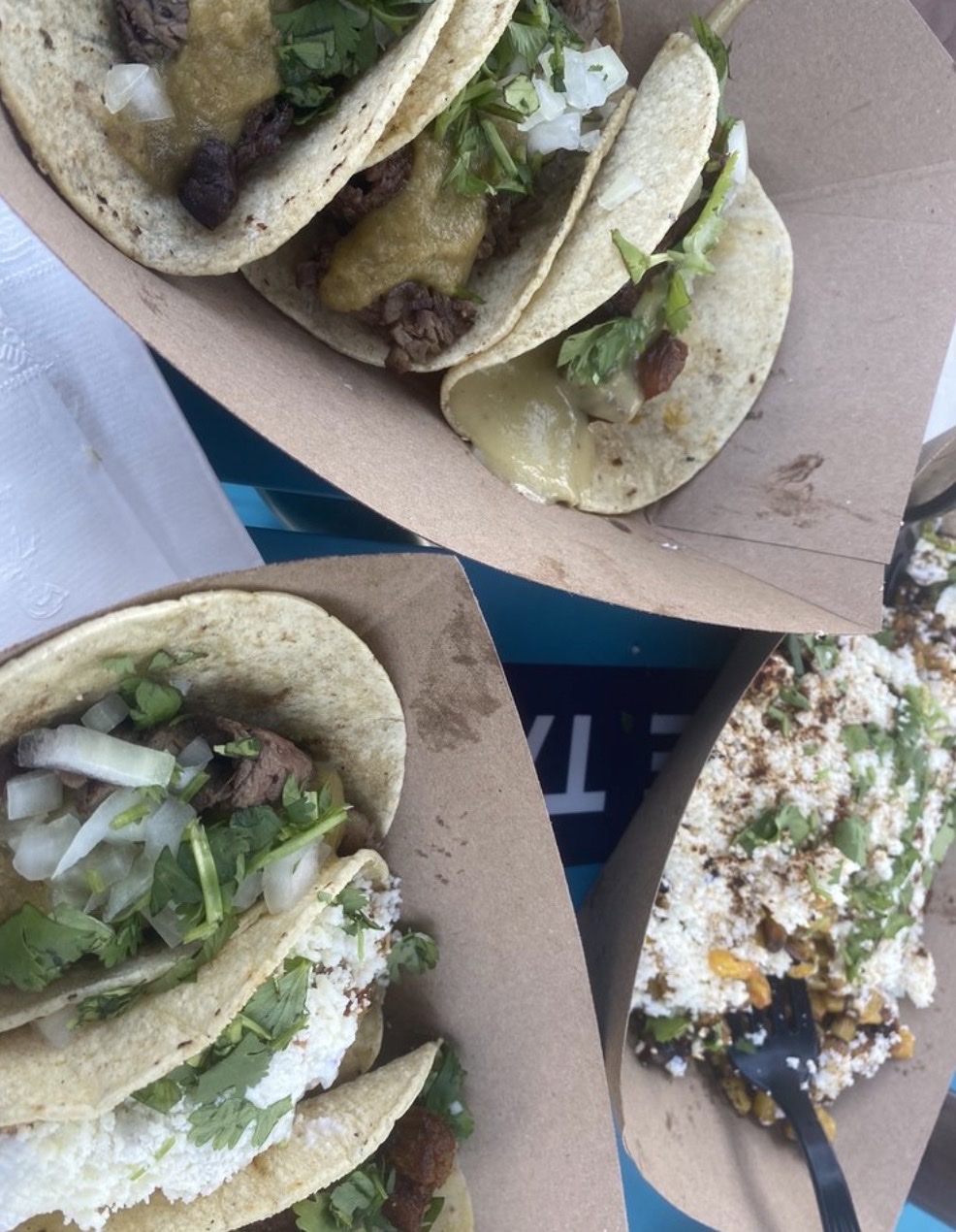 Read moreI visited here on a Thursday afternoon around 3 PM. They have a taco deal that includes eight tacos, chips and queso, along with the sweet corn for $34. A friend and I decided to try that. The chicken tacos were very moist and very juicy I would definitely recommend a paper towel. The steak tacos were extremely dry although they tried to add the green sauce on top of it you could still taste how dry the steak was. The pork tacos did have a bit of a kick to them. I think the pork would have been my favorite one had they not overcooked the pork. Similarly, the steak was overcooked as well. Presentation was definitely there with the corn but like a previous comment mentioned it did taste like frozen corn. Me and my friend kept talking about how soft it felt. I think this place has potential but I am not sure I would...