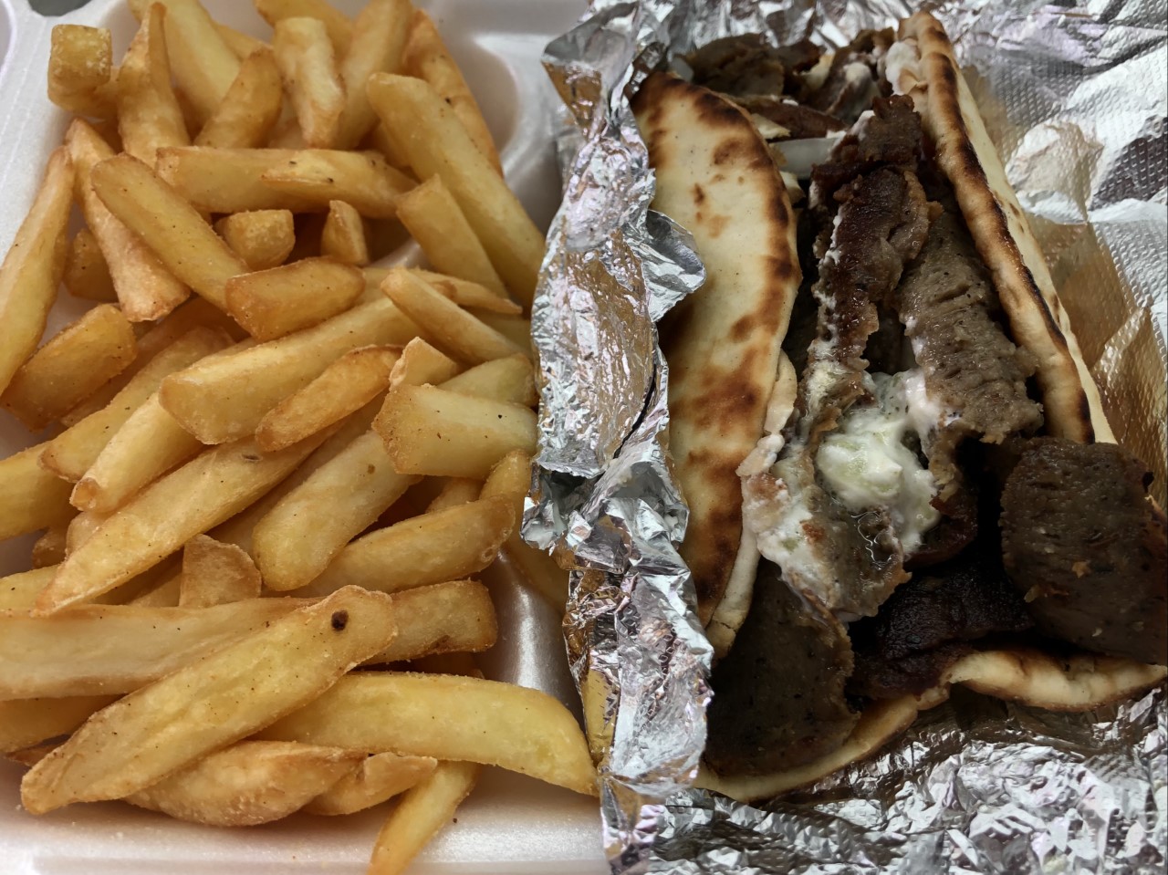 And a gyro is what I got. The Gyro & Fries meal, for $8.99 with my choice of original gyro meat. You can also get it with chicken. My Gyro meal was one large heaped up pita, full of delicious gyro meat and tzatziki sauce along with a mound of crispy good fries. I felt it was a nice portion for the price!