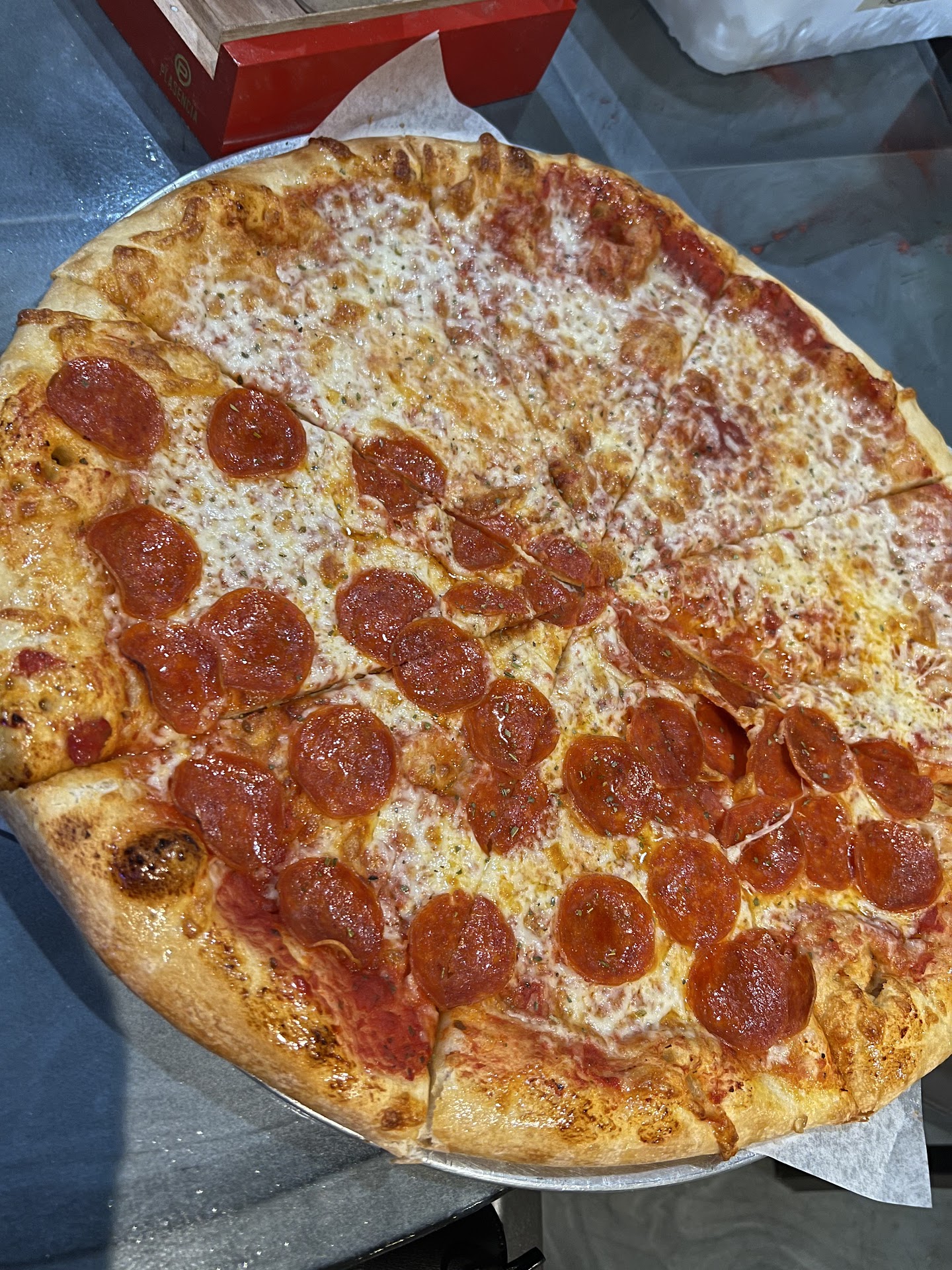 Read moreThis is our new go to pizza place!! Not only is the pizza delicious and fresh, but the service is amazing. This place really knows how to take care of its customers. This past Saturday we got 2 take out pizzas, it was ready right when I told it would be and was greeted by the nicest employees. When I got home I put the pizzas in the oven to keep them warm until our guests arrived. Well this was a big mistake, as the top of the box was touching the top oven burners and caught on fire!! Thank God we caught it quick and avoided a potential disaster... but it still ruined the pizza that was on top :( After cleaning up the ashes, I called Palazzo's back to place another order of the same pizza and briefly explained why I was getting a repeat order. When I went back to pick up the pizza, I was greeted by the same sweet people and they all knew what had happened.. when I got my card out to pay, these gracious folks did not charge me for the replacement pizza. I realized this is a family-run place because when I was thanking them, the girl at the register and kitchen guys pointed to a guy standing at the bar (presumably the owner) and said to thank him. I did thank him and spoke with him for a moment. Very nice people!! They had a big group in the restaurant watching the Gator game, such a nice, fun family-friendly vibe. I left there with a warm heart and a warm, delicious pizza!!! This day in time it seems like it good service is hard to find... it was refreshing to find great service, nice people and delish pizza all in...