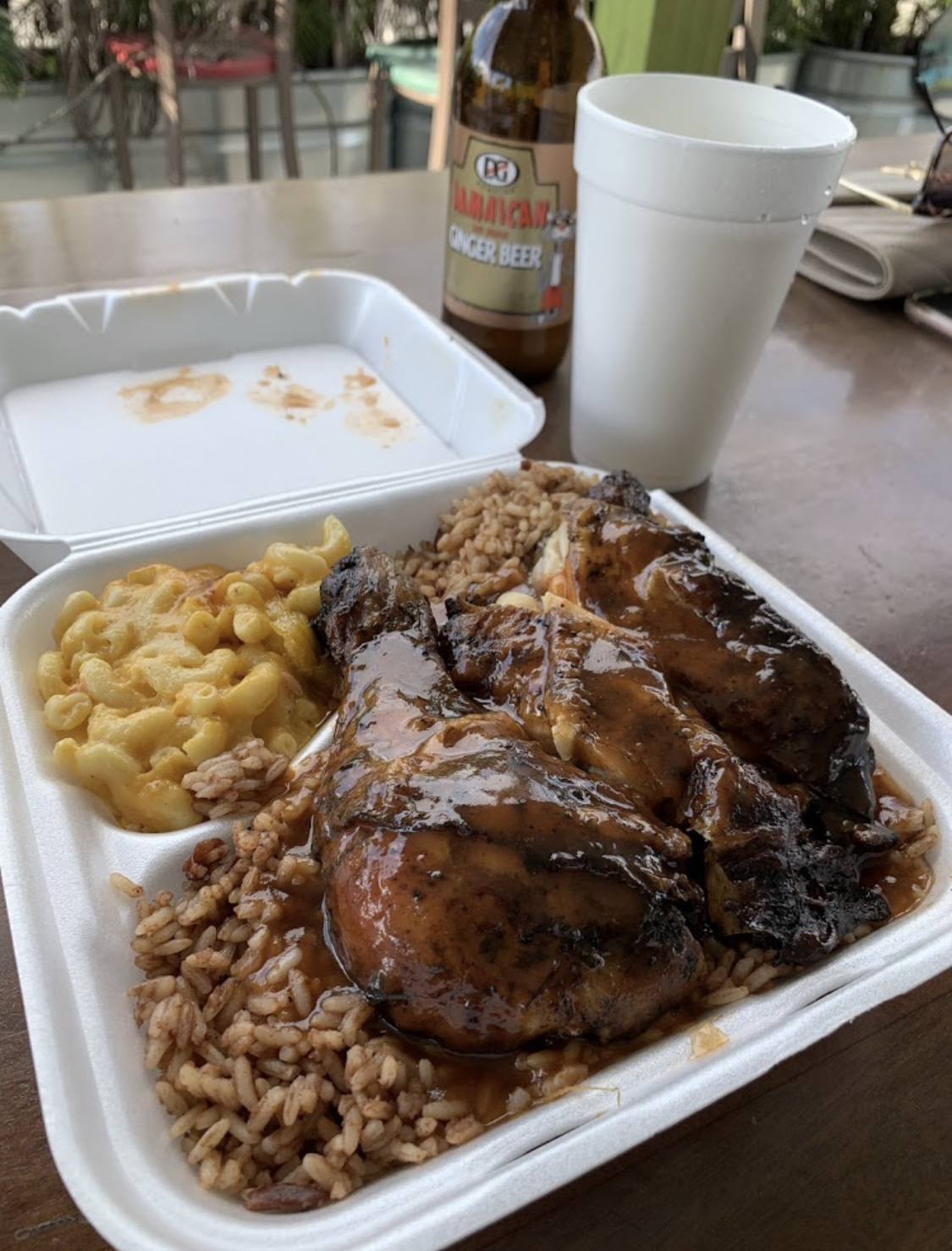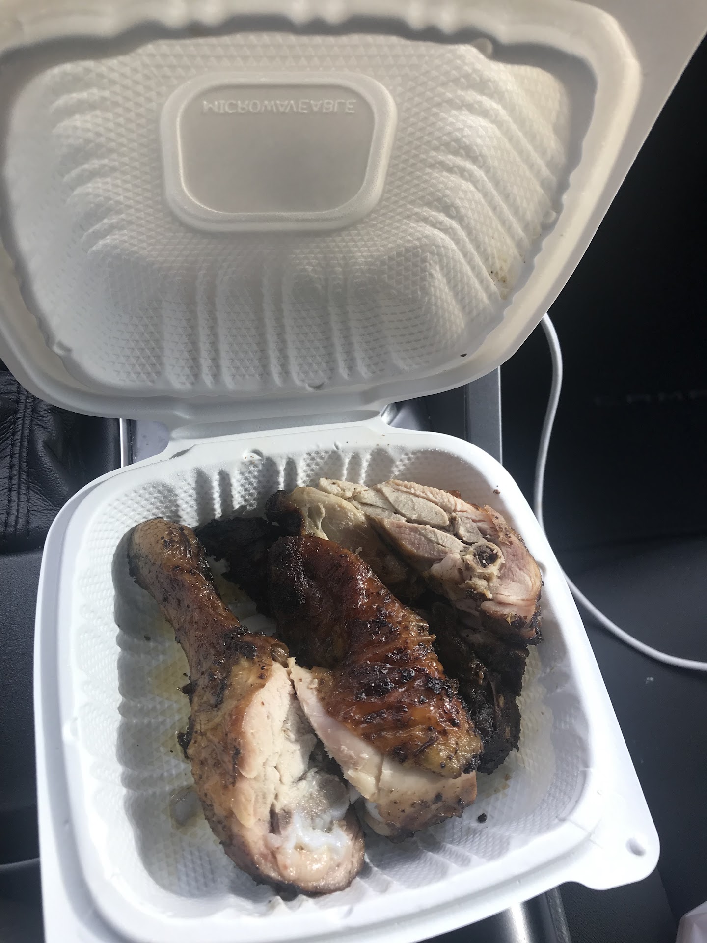 Read moreDecided to try Jerk Hut since someone else mentioned it at another another Jamaican restaurant. Unfortunately I was underwhelmed. I order the 1/2 lb jerk pork, 1/4 jerk chicken, and side of mac for $18. The jerk pork and chicken came out hot and it was smoked which was good. However there wasnât much jerk seasoning on either one. Jerk should have some kick to it from the pepper, but there was none. More like jerk flavored pork and chicken, not seasoning. Also, the pork wasnât soft, still a little tough like it needed to be cooked a bit longer. The sauce they gave with the jerk was a sweet sauce that does not pair well with the jerk.