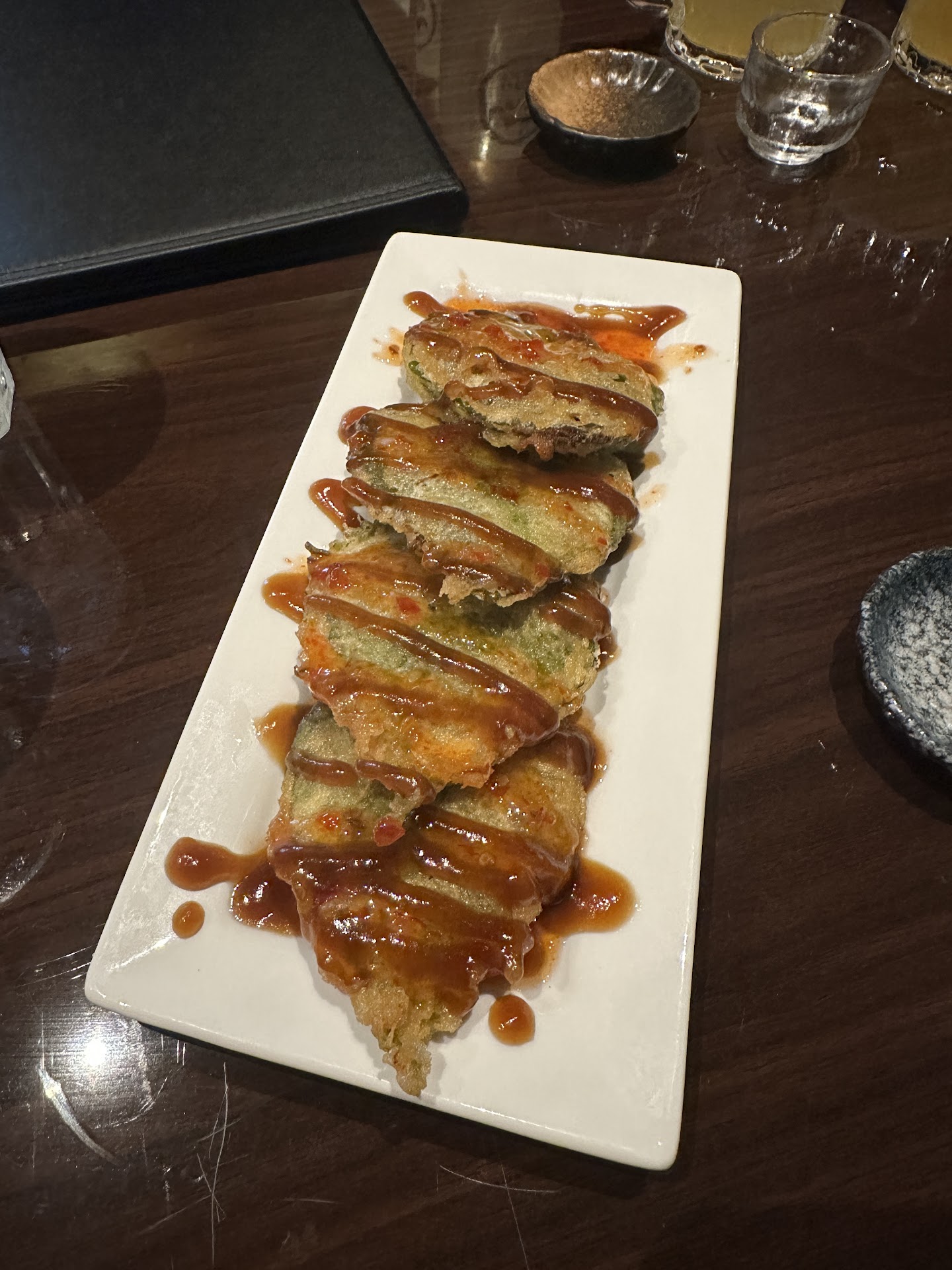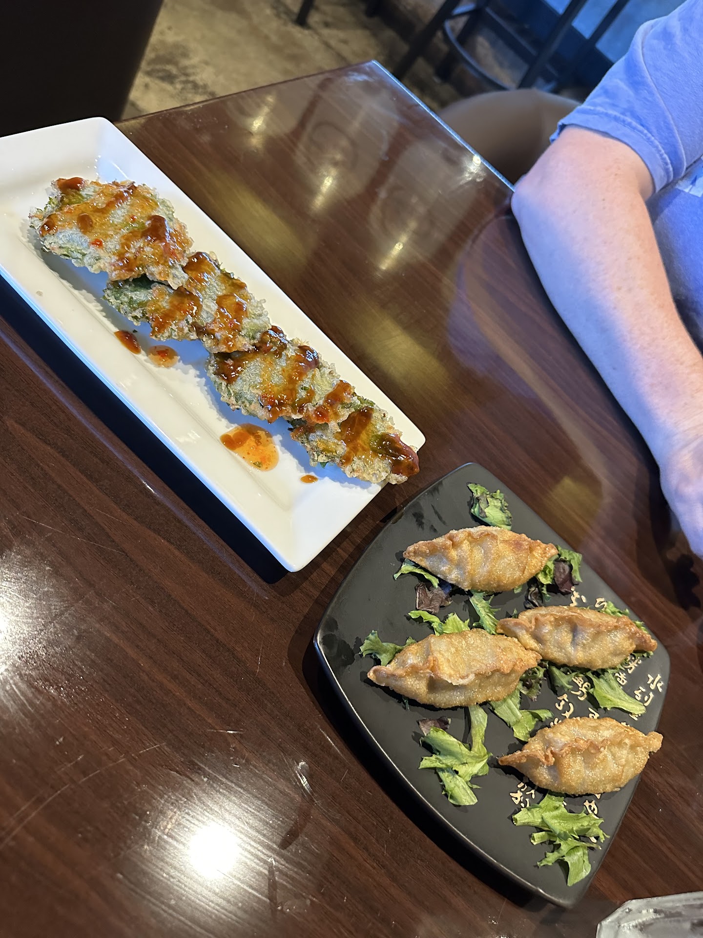 I love the vibe of the restaurant! The cold sake is the best sake I ever had. I usually do not drink alcohol but this drink is infused with lychee and it is a perfect balance of sweetness and the bitterness of alcohol. I also ordered the crab rangoon, mussels, Joe’s fresh roll, Bayshore roll, Asian Sensation roll, and Rock N Roll. The crab rangoon is so yummy and innovative. I was shocked to see the “outer shell” being made from perilla leaves so it is light and crunchy. Mussels are a classic app and the texture with the tobiko is perfect. Joe’s fresh roll is also yummy! I love the ponzo sauce because it balances out the whole dish and makes it light. I enjoyed all the rolls I ordered but my favorite roll is the Rock N Roll because I love shrimp tempura. I honestly recommended everything I ordered. I need to try the other entrees next time I come instead of only ordering sushi.
