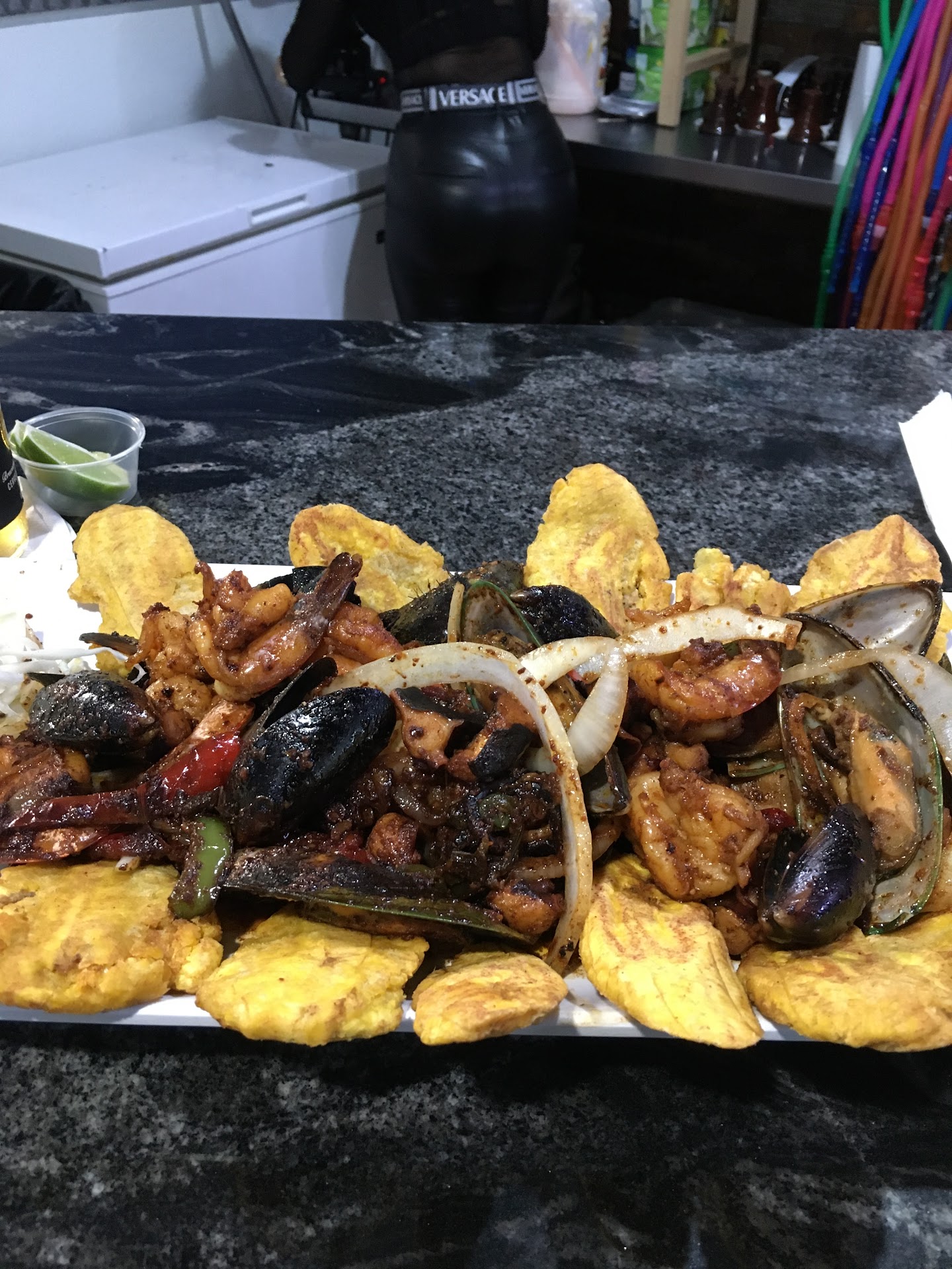 Came across this place while looking for a Dominican Restaurant in the area. Let me start by saying that this is a bar no a restaurant. They do serve food but they didn’t provide a written menu, and the music was way too loud I could barely hear the server. The place is small for such loud music, your head pounds, not enjoyable at all. Nice selection of songs though, oldies but good salsa and merengue. We ordered to go because of the loud music, and we had the kids with us as it said restaurant on the name, but the atmosphere at 2pm on a Sunday was already that of a night time bar. Think of a barrio disco bar that happens to serve food. Now the servers were pleasant and friendly. The food so so. I was craving Dominican chicharrón and asked before ordering if they had chicharrón, and was given over fried pork, the rest of the food was meh… so if you are looking for a restaurant to enjoy a nice Dominican meal, this is...