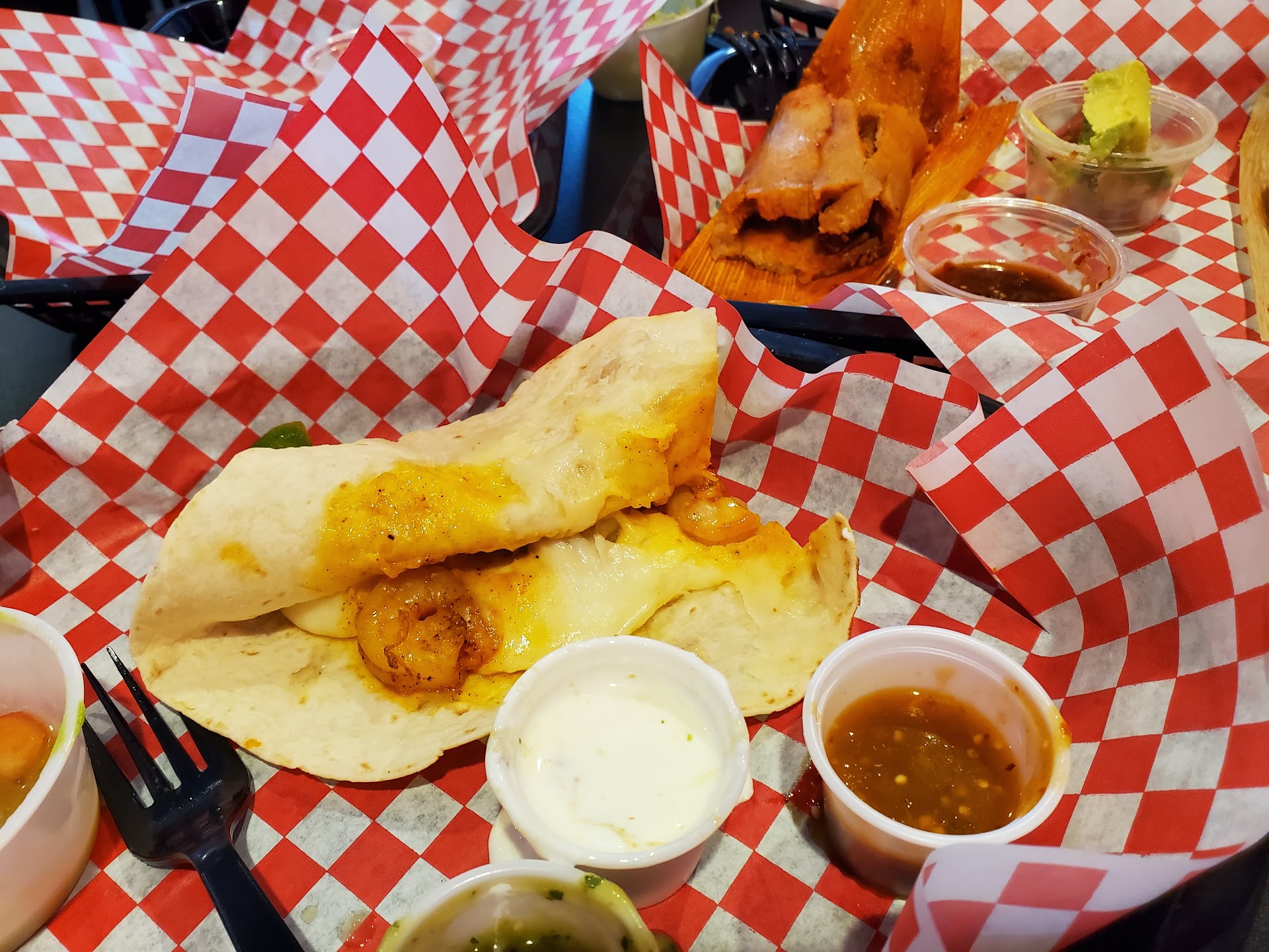 Read moreSuper bland, tamales didn't have any seasoning in mix and the chicken on inside was covered in such a spicy pepper like puré stuff that didn't have any flavor to balance out just pure bland heat, all seeds, making it not worth eating unless you just like to sweat. My husband did say the chorizo was really good(he has only eaten Mexican food in Florida and San Fran so take his opinion with a grain of salt) and the quesadilla my niece ate did have quality queso fresco in it but the offerings on their menu that sound more authentic such as the tostada, the lengua taco I ate that tasted like corned beef and the sopas were extremely americanized and not worth the double price of quality tacos such as Tacos De Oro (none for than $3) in North Tampa which would still be a cheaper after the 25 minute drive and the gas that it took to get there. No taco is worth $4 and we should have walked out as soon as we saw the $7 quesadilla. They must have good marketing because it was full of unhappy looking diners and I just wanna help whoever reads this get better tacos lol, unless you like bland...