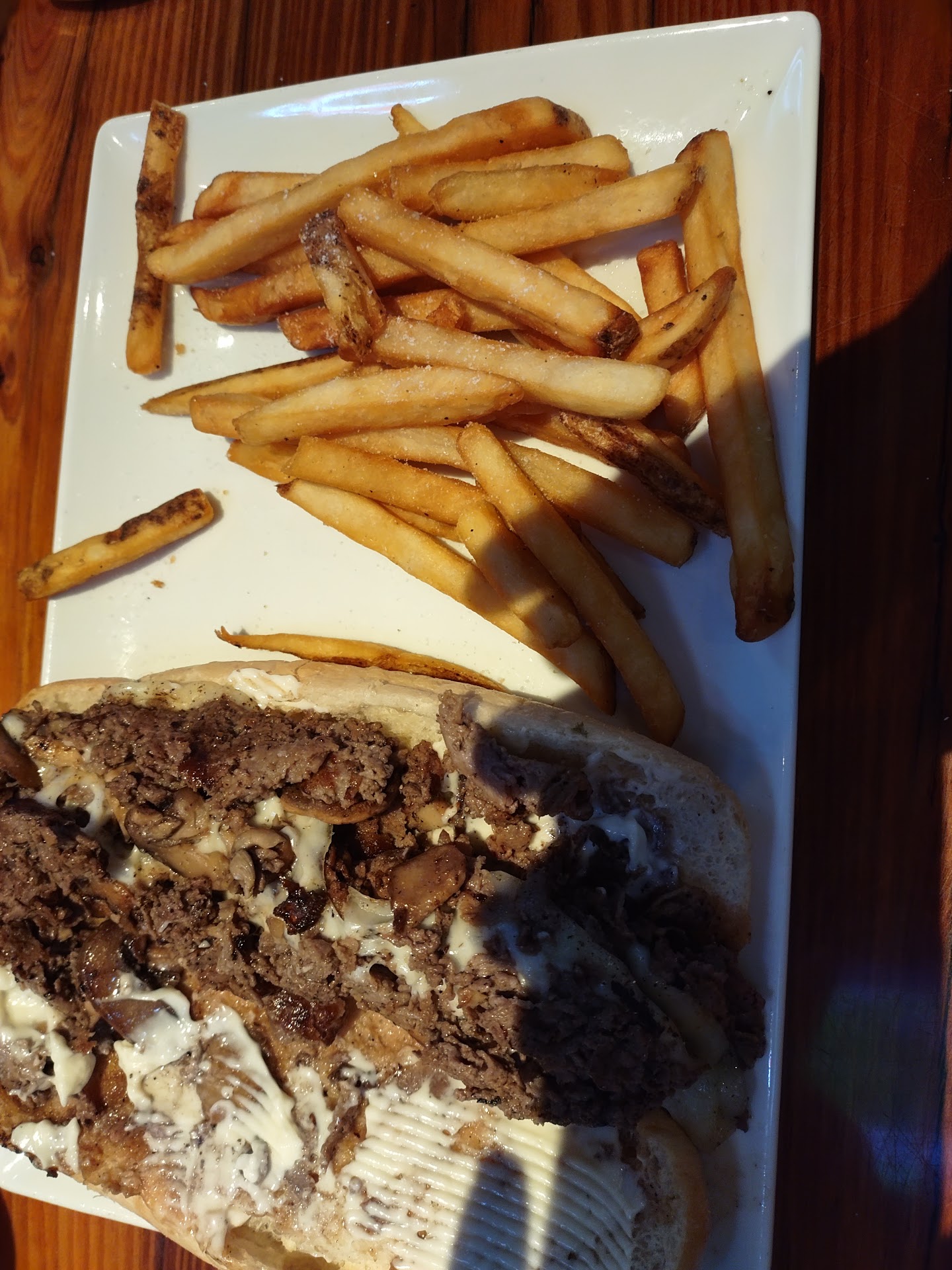 Read moreFor the first time going to Miller's Ale House I must say the bathrooms for the women were not the greatest that I've ever been in they need to be maintained more often they need a little bit of updating my husband says the men's bathroom was just fine smelled like flowers even no smell of urine woohoo first in a long time the food on the other hand wasn't as great as I thought it would be the burger my husband had gotten was supposed to be medium well and then inside of it was rare he could not eat the rest of it and the cheese was not cooked on the hamburger and iced tea the tea wasn't the greatest my husband is a tea connoisseur and said this was the worst tea he ever had. my Philly cheese steak was okay wasn't the best I've had they do not tell you that if you want to add mushrooms it's 99 Cents more which I thought all Philly cheese steak come with onions peppers mushrooms cheese and steak. For an appetizer we got the Monday special chicken tenders for $6.99 they were really good we got the garlic parmesan as usual you're always going to get some hard spots on them which is normal other than that those are pretty well the fries were good as well too the service Myla and Angel we're really good waiters and waitresses they came out and asked us several times how we like their meal made sure we were happy with everything we've got and when we weren't they politely listened and tried making up for the mistakes they were really good people. The manager Jonathan came out and greeted us and asked us about our meal after we had stated something to the waitresses and waiter and he gave us a $25 gift card which we greatly appreciate to come back and try to do our first time over again and compensation of what went on today other than that the place was really nice the atmosphere was up the TVs were all on they had Sports they had comedy they had news they're all around Traverse and different programs you have inside and outside dining not very busy if you like burgers and Beer or even the fine spirits and you don't mind a little bit of a price this would...