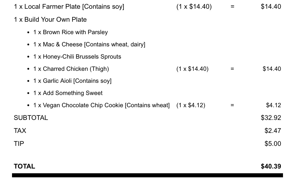 No way to candy coat this.. the place is expensive as hell but if you like delicious food it's worth every penny. I got the most expensive meal offered which was steak AND Chicken with rice, mushrooms and roasted sweet potatoes. Like I said everything was just perfect from a flavor standpoint, an excellent cut of meat well seasoned and cooked perfectly. Same with the vegetables but it was expensive. It was nearly $40 for a meal for myself. Granted, that was more than enough food for two people to share.. it's billed as an entree for one.