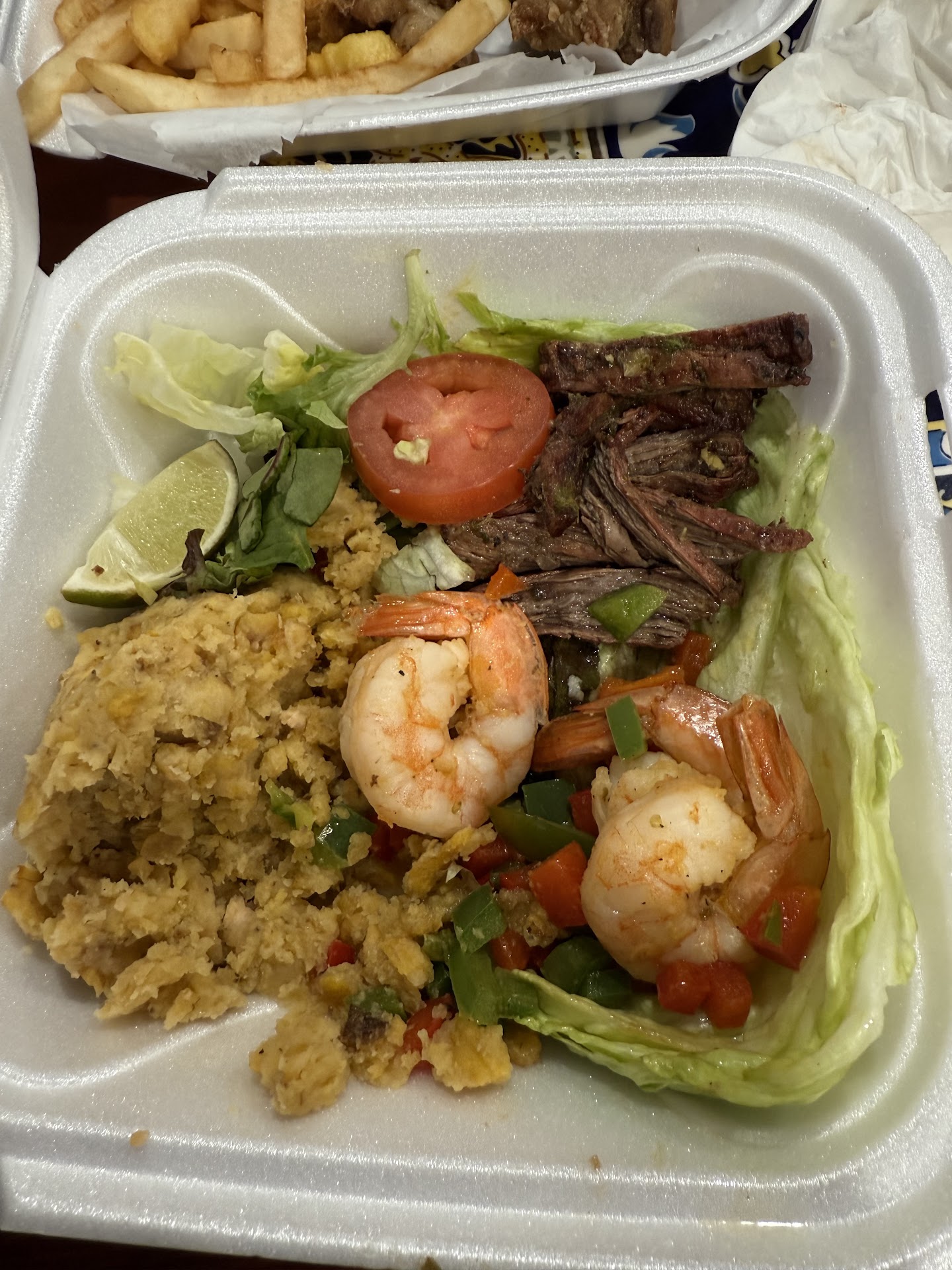 Ā Ā Ā Read moreI used to really like this place I would come the whole time, but the experience that I had was not good as the food was not good. I ordered the Mofongo Mar Y Tierra like I always do usually the shrimp and the steak is in garlic sauce always has been when I ordered it Al ajigo This time the shrimp was cold, like if they took it from their cold Seafood salad and they put some sauce on top of the steak. I went back and told him the shrimp was cold. They made a new one, but by the time I got my shrimp Made the steak and Mofongo was cold . Iāve never gotten this with peppers and my husband ordered the chicharrón de pollo With french fries they gave us two different type of french fries crinkled and straight french fries and the chicken had no seasoning. It looks like they only use salt and pepper, which I used to not Be like that so it makes me wonder if they change chef? I think for the amount I paid $73 was way too much for my plate my husbandās plate my daughter plate which was the same as my husband and two Alcapuria 2 maltas and a coke Seems a bit much I wouldnāt mind if the food was consistent but when itās not consistent, that price hurts needless to say, I threw away my plate just as shown...