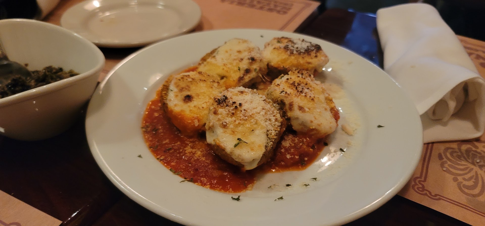 First time eating here. Started out really good with kind, attentive service. The servers and host were very kind and mostly attentive. The fresh bread and the meatball appetizer were very good. Dinner entrees were very disappointing. The portion size and quality of the food did not justify the high prices. We were very surprised when the check came and found out how much the "off menu" entrees wound up costing. Two of us ordered what was supposed to be short rib with marsala sauce, but it was more like a beef brisket that was very dry and charred. The marsala sauce was very skimpy and was not enough to compensate for the dry meat. These "short rib" entrees were not worth the $33.00 each that was charged. The chicken parmesan was somewhat disappointing as well. The $24.00 chicken was paper thin and only one piece, when other places provide two thicker pieces for less money that taste better. The melted mozzarella topping over the chicken was thicker than the chicken, so it was more like eating an appetizer of mozzarella rather than chicken parmesan. The sauces were ok but nothing spectacular. The spaghetti with meatball entree was lacking enough sauce as well, and the spaghetti was rather dry and little taste, and they charged $22.00 for this inferior dish. The meatballs were good but didn't justify the $22.00 price tag. The Sacchetini Du Pere was very delicious, but the price for the portion given was way over the top. It came on the plate with what looked like a small portion, but they said it was the large portion because it had ten pieces of pasta. If it was the $13.00 price, it would have made sense, but it was the $23.00 price that was very disappointing for the portion size. The only thing that was large, was the plate. Other restaurants have given a full plate for this same type of meal. The four desserts were very good, and for the $9.00 each price, the flavor and size were adequate but could have been larger. We had five entrees, four desserts, one appetizer, bread, and everyone had water to drink, and this cost over $240.00. We have paid more money at other restaurants, but at least at those, the portions and quality of food were worth the price. The restaurant appearance was nice. However, it was so loud in there that we could barely hear each other talking, and the noise never had any quiet gaps. This made it slightly unpleasant to wait for our meals, but that’s not the restaurants fault. Just loud people escalating their voices to be heard across their tables. The best part of the dining experience was sharing time with our family, the meatballs, and the desserts. We probably won't eat here again because we don't feel like we received enough value for the price paid. We were hoping to have a stellar experience but left disappointed. I should have read the reviews before going. Many similar experiences by other people. Chef Boyardee tasting sauce, small portions for the high prices, small desserts for the price. These are things that people have experienced as well. I look at the different review levels including 1 star reviews to see how the restaurant responds. Virtually zero replies so they must only care about collecting your money and seem to place little value on reviews. Their 4.7 stars is really not a good reflection of the actual experience. You'd think a business would want to make...