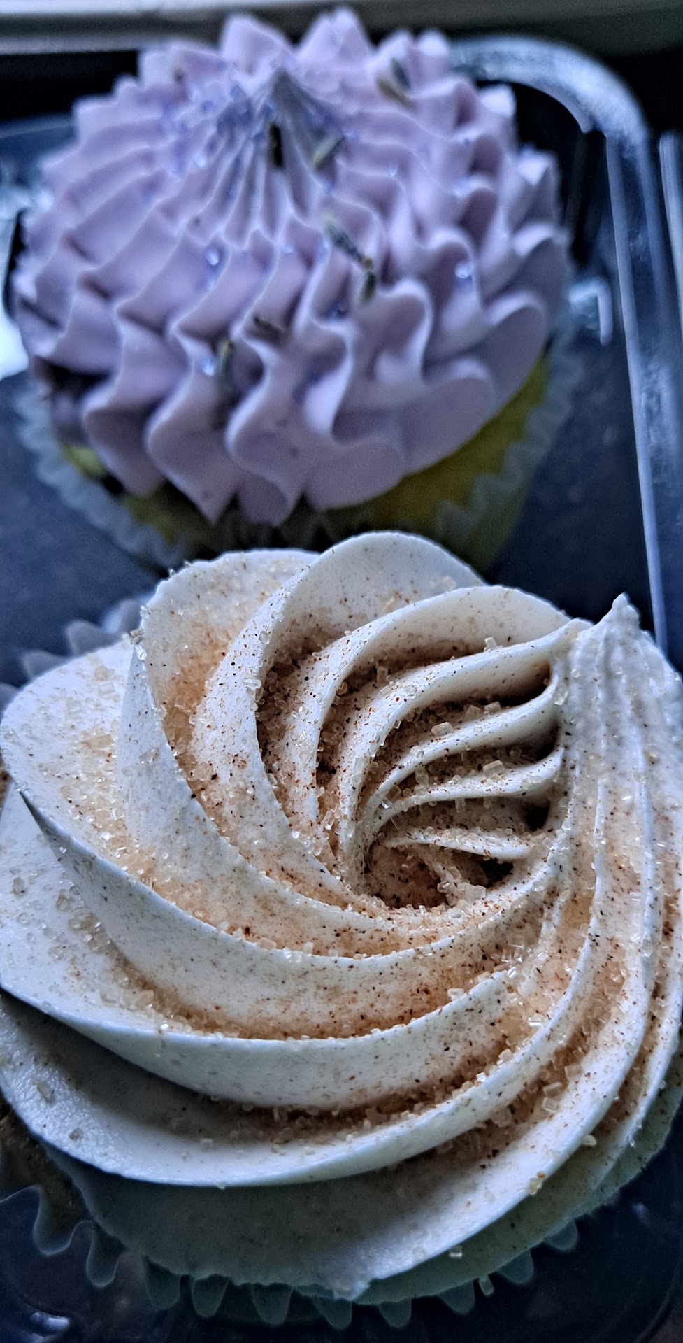 Lavender blueberry cupcake: Severely legit. Lavender buds with lavender sparkles on lavender icing that is soft like lavender clouds. Best cupcake ever.