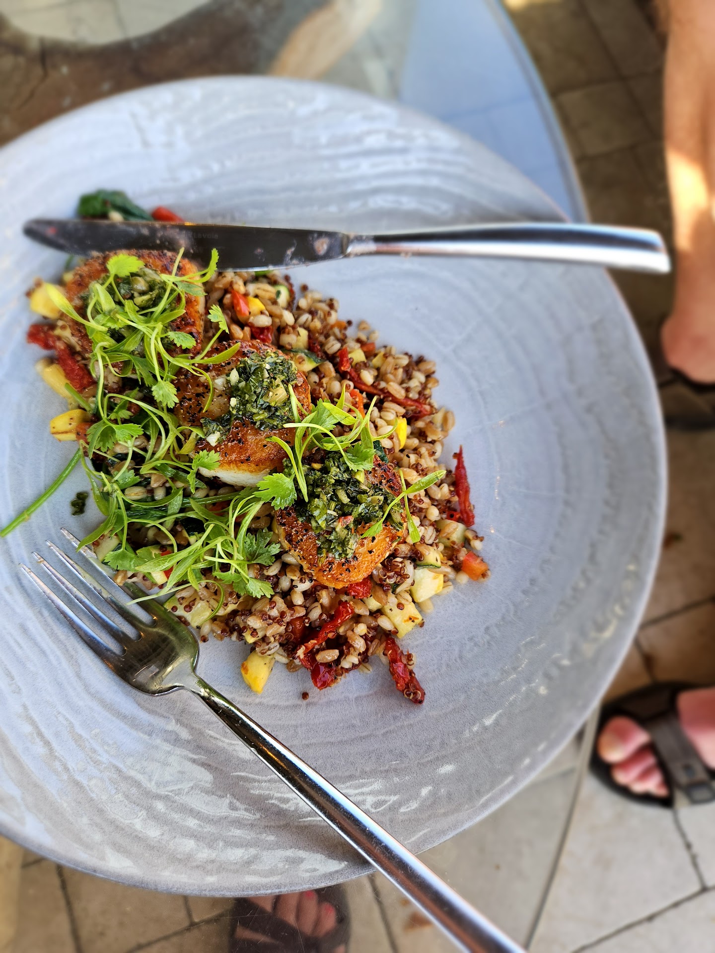 I am only giving 2 stars because of the view. That was excellent. Everything else was horrible. We came here on Christmas, without any reservations, got seated immediately. Which was good at first, but now I understand why the restaurant was only 1/3 full on Christmas. The food was terrible. I mean, really awful. Especially for the prices. My son had strip steak. $40. It was over half gristle and half inedible. His sides were so heavily salted, they were disgusting. (Yes I tasted them after he complained about how salty they were.) I ordered scallops. I have never done this before in an elegant restaurant, but I had to discreetly remove it from my mouth. It had a terrible ammonia taste. Yes, ammonia. Like bleach. I was really looking forward to the garlic flavored scallops that the server had described. I ate half of one of the 3 scallops that came with the meal, ($40), am praying I donât get food poisoning. No clue why it tasted like that. The sides that came with my dish were also extremely heavily salted to the point of being inedible. I was going to say something- which I never do- but because it was Christmas, my husband didnât want to cause a problem, so I didnât. Also the service. When we first sat down, we got water right away, but then had to wait for the server. At one point, we went 24 minutes for our server to return. I only know the time because I received a text right when our server brought out bread, so I knew the last time she was there, and started looking at my phone when it seemed like forever since the server was there. And the restaurant was only 1/3 full. Where was she? And she definitely wasnât the only server, as we saw others. For a restaurant of this cost, you would expect decent service, and at least minimally good food that isnât loaded with a ton of salt to make up for lack of flavor. It was so disappointing. We decided to splurge on Christmas with a very elegant meal, and did not receive anything close. Most JW Marriott restaurants are very good. Not this one. Would give the food and service one star, but gave 2 stars because of the location and view. Btw our meal with drinks and one dessert for 4 people was $360. Glass of wine was $16. (Which I understand, itâs a rooftop restaurant in downtown Tampa). But still. Disappointing!! Do not waste several hundreds of dollars on...