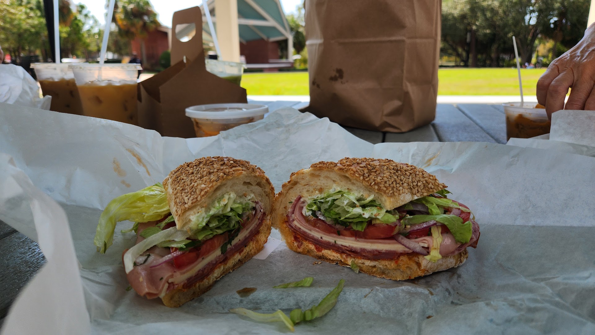 However, I found that the real star of the show was SuperNatural's Italian Stallion sandwich. For whatever reason, bakers in Florida generally can't make bread that it crispy on the outside and soft, moist on the inside. SuperNatural's ciabatta roll with sesame seeds achieved crusty bread bliss. Their delicious Italian Stallion sandwich has a perfect balance of 4 salty meats and dynamically sharp provolone cheese with the wonderful acidity and tanginess of the vinegar pepper salad spread.