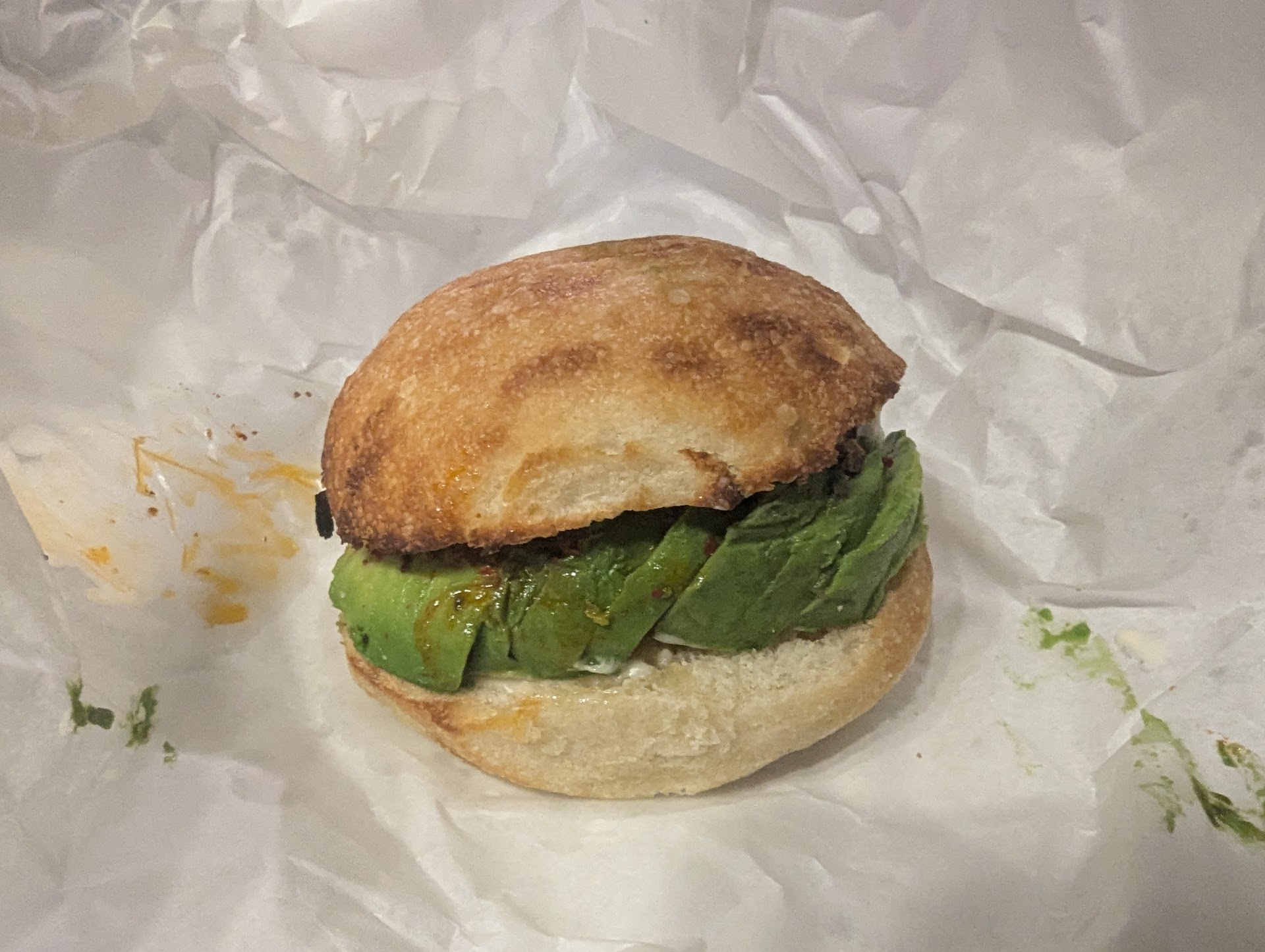 Avocado sandwich: delicious. I love the little bit of spices they put on it. Really made the sandwich pop. Highly recommend. (Can they make it with some egg as well? Or would that ruin it?)