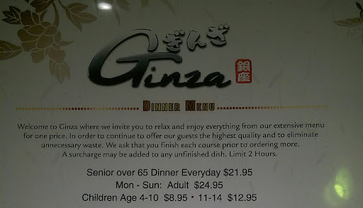 My wife and I came here after months of avoiding trying a new buffet style sushi place (our normal is Koizi). I wish I could say I had a better time with Ginza. Somehow the night was an unfolding of miss after miss. The atmosphere, to start, is very awkward and unsatisfying to eat in. Lights are left on full glow, the walls are undecorated for the most part, and on the walls next to the booths are paper signs for the waiters that are a bit hard not to be distracted by. The waiters was the next eye catching problem for us. It seemed like waiters just jumped at tables in an unorganized manor; while also paying very low attention to people seated to begin with. To start with our service: the waiter attending us brought Sprite instead of lemonade, waited 10 minutes before coming back saying âoh sorry I think I gave you sprite insteadâ. Two drinks (a water and a lemonade) doesnât seem like something very hard to start the night off with. From there it got worse. The food was very dry on multiple different rolls, entrees as well were very subexpectation for some of the high reviews this place has, the sweet and sour chicken somehow tasted exactly like McDonaldâs chicken nuggets, and then a different waiter we had not met came by half way through the meal and topped my âsprite-lemonadeâ off with water. All of this before even getting to the bill. This place definitely over charges. I admired the variety of choice that the menu had to offer at first glance, but not long after I could see that everything was overcharged and extremely underdelivered. It was not pleasant to leave somewhere paying upwards to $60 and not having a single thing taste past âmehâ and have as much go wrong as we had. Iâm glad to mark this place off my list, and Iâll be seeing Koizi...