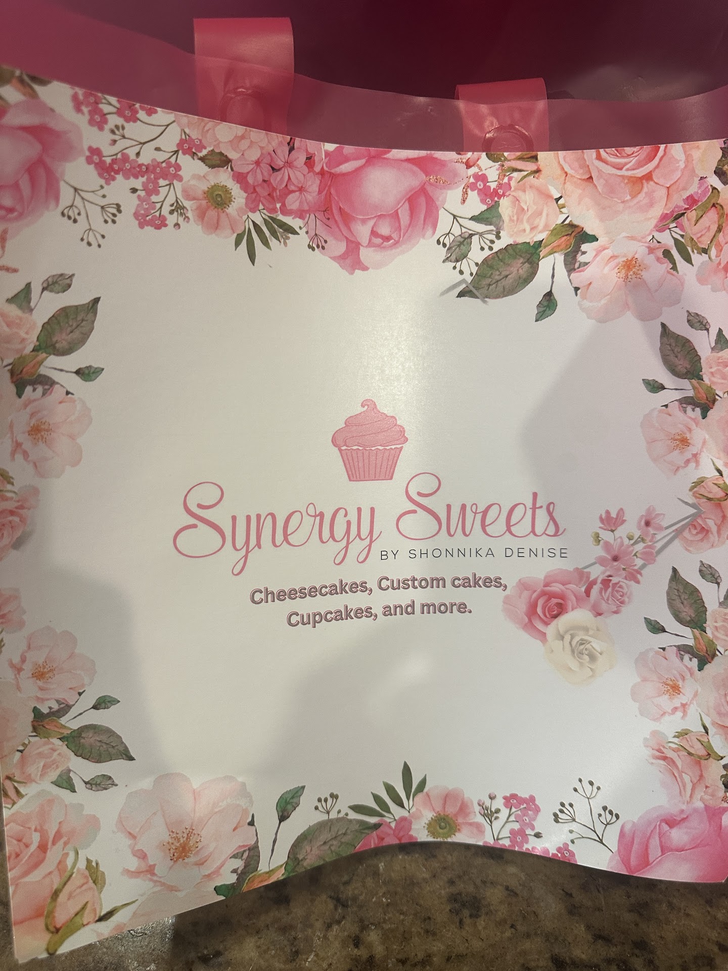 Read moreI have been stalking synergy sweet’s Instagram for a while and decided I wanted my baby shower’s cake to be from there . The cake went perfectly with my baby shower sunflower theme ! One tier of the cake was chocolate which actually tasted like chocolate cake and the other tier was vanilla with fruit. The cakes were moist and delicious and the buttercream icing went perfectly with the cake. I ordered another cake for my mother’s 65th birthday - strawberry cake with cheesecake. The design of the cake was beautiful and went with the theme I had in mind for my mother’s decorations. I also ordered red velvet and cheesecake for Christmas. The cake was moist and tasted like actual red velvet cake. I was excited when the bakery was open and I have had the pumpkin cupcakes, chocolate chip cookie and the espresso martini cheesecake. I appreciate that the bakery elicits feedback from their customers and actually listen. Synergy sweets asked about different flavours of cheesecake to make and I requested coffee and I finally got to taste the expresso martini which was a burst of coffee flavour with each bite in my mouth . The size of the cheesecake was perfect for me to get a taste during the whole week. The decor of the bakery is warm and inviting and goes perfectly with entering a blanket filled with delicious sweets. Everytime I go, the music makes me feel like I am in an episode of Bridgerton . Customer service is always pleasant and inviting. The packaging to include the pink bag all adds to the aura of leaving with a special piece of the...