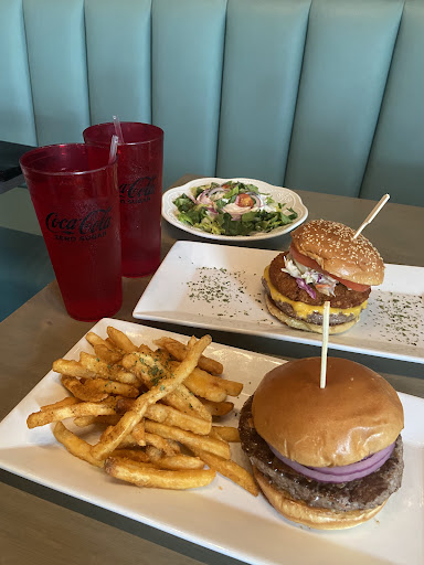 Overall this was not a pleasant experience. This is the 2nd time we have tried the restaurant and both times very disappointing. We had a party of six ( which means they add 20% gratuity, which seems high for this type of place). Not a complicated order at all. Took almost 40 minutes for 5 burgers and a chicken sandwich. It was not busy during our time there. Only drinks ordered were waters, one old fashion and one margarita ( it was two for happy hour) Service was horrible, never asked about drink refills and only saw the server for order, delivery and bill. They are a hamburger place and the burgers had no flavor at all and was definitely a frozen meat patty thrown on a grill or broiler and that is it. I had a couple of bites and due to it tasting funny my meal just sat there with the server completely ignoring that my whole meal was basically untouched. I am giving the food two stars because the chicken sandwich was good according to my wife. Spoke with the manager and she was polite. Took my meal off and I got the we will talk with server and we had a big group before you arrived lines. I image this place only stays in business due to location and alcohol because based on both of our experiences it is not the food. The previous time the food was basic and nothing great but at least the server was nice although it did take forever. Either way I will not recommend this place nor will we ever go...
