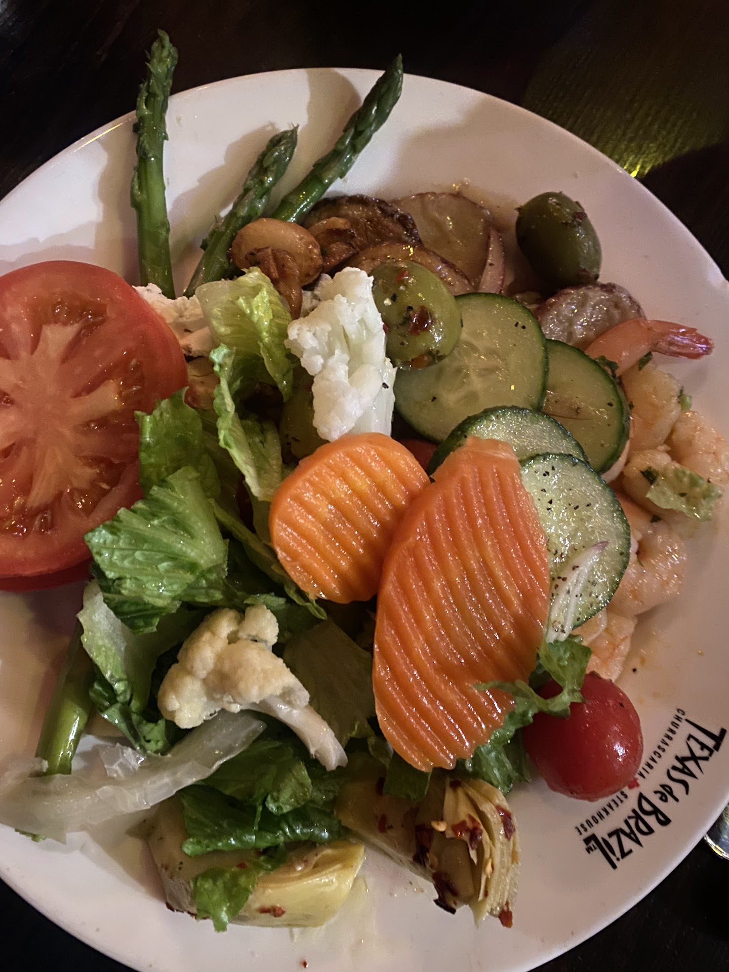 This was the worst restaurant experience I have had in Tampa in more than a decade. After being seated it took more than 10 minutes for our waiter to finally come by our table to take our drink order, which was followed by another 10 minutes to bring them to our table. At that point he still had not given us the cards so that we could begin dining, and he argued with me when I asked for them. In retrospect the cards were completely unnecessary, as my card was on green the entirety of the meal and I still had to wait 5-10 minutes at a time for anyone to bring meat by our table. Over the course of 2 hours, we were only offered a few cuts of meat (less than half the advertised menu). The meat that was cooked properly was delicious. Unfortunately, most of the meat was not cooked properly. The petit filets were blue – cold and raw in the middle, and the picanha was very similar.