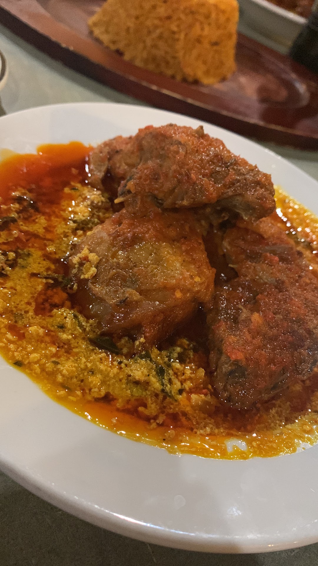 However, there were certain aspects of the dining experience that left room for improvement. One notable concern was the portion size in relation to the price. Priced at nearly $30, the portion of egusi soup I received felt inadequate, especially when compared to similar offerings in other establishments. In my previous dining experiences in Los Angeles, I've enjoyed equally delicious egusi soup at a lower price point, often with portions substantial enough to serve two people or even take some home for later.