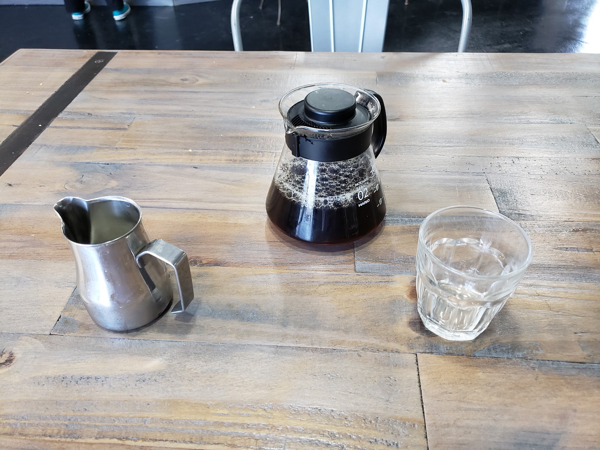 Read moreI really like this place. The coffee is unique tasting and tasty. They have these tart shaped organic muffins. Also good. And a decent small selection of food. Reasonably priced. Initially it didn't impress me. With its minimalist interior I thought it would be another mediocre coffee shop. When I got my filter coffee it was served in a small coffee pot with a glass rather than a mug. That could be either pretentious or a good sign. The coffee itself had a dark watery appearance. Like a darker roast with too much water added. For me the traditional filter coffee taste when it's well made is best. This did not have that. It was more bitter and watery tasting. Which turned out too be good, not bad. It had a really good overall flavor balance. It was unique tasting which was an added bonus. It was clear the place prides itself on making good coffee and has mad skills for it. Truely a rare find. Once I started enjoying the coffee the experience of the whole place clicked for me. The friendly staff, the just right background music, etc. Might be the best coffee shop in...