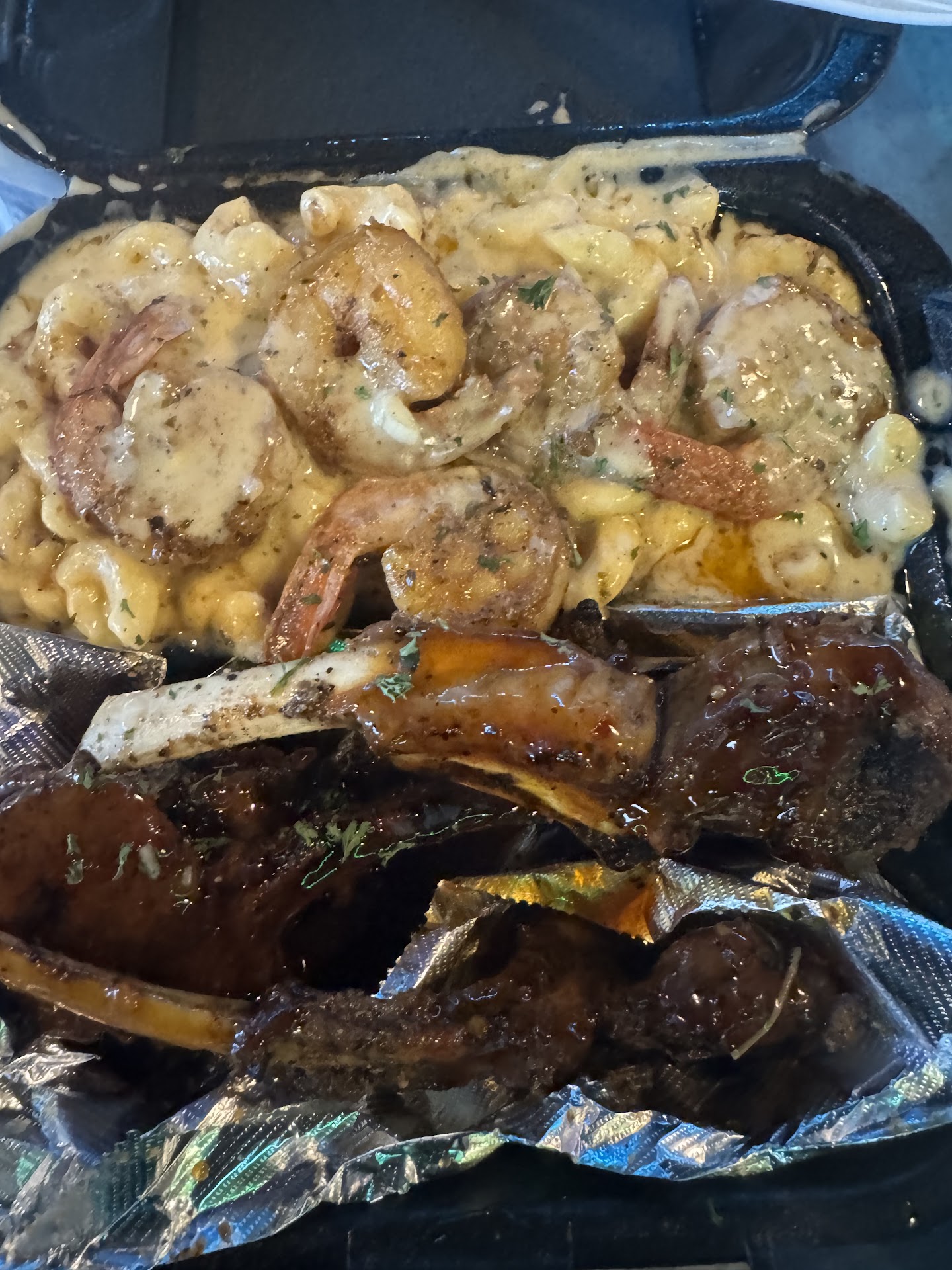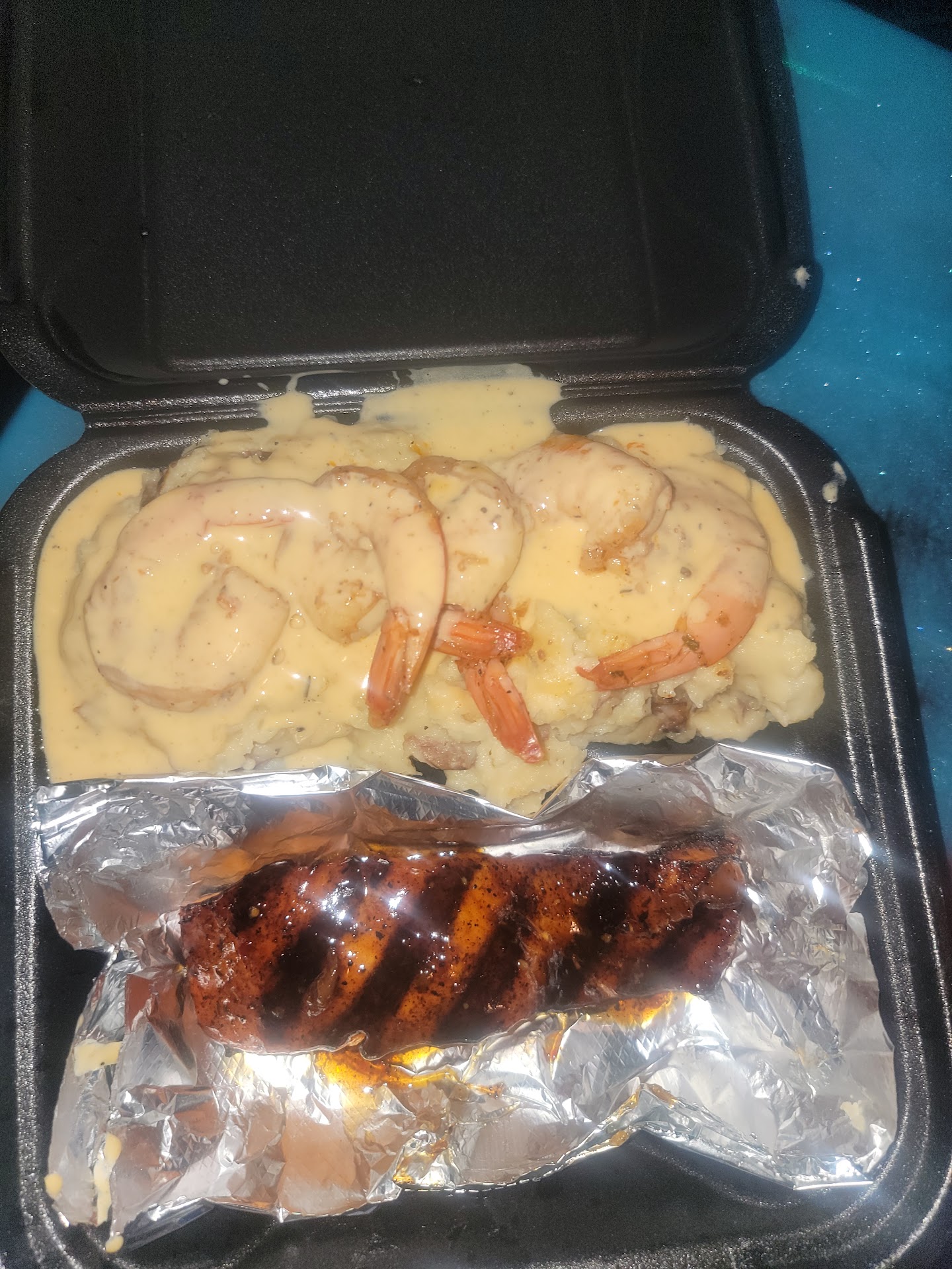 Read moreI went to Tampa to celebrate my birthday somewhere new, and when it came time for dinner I decided to go somewhere local vs something I can get at home. Searched for food near me, looked at the menu and pictures and decided to try. BEST DECISION EVER. Atmosphere was very cool, it was very clean, amazing music and vibes. The Gentleman who was at the register greeted me warmly and went over the main menu and daily specials with care. There were soooo many super delicious sounding options. I got the garlic salmon shrimp and mash potatoes special to go. The wait was decent , not too long or short. It was the right amount of time for food like that to being it was made fresh. The time waiting didn't feel like it was too long as well due to the amazing music selection vibing in the resturaunt. It did get a little full, and seating was limited but not crowded. Everyone that came in was kind and respectful to one another and adjusted as needed without being asked to make sure everyone could get in comfortably. When I got my food, and then took that first bite of shrimp in the car before taking the drive back to the hotel, I throught I was going to have to eat my entire meal right then and there it was soooo good. When I got to the hotel and ate the entire meal... just perfect. Shrimp and salmon. Cooked to perfection and had soooo much flavor from the sauce to the general seasoning. Juicy and delicious and not overwhelming garlic, just right. Mash potatoes were the right mix of creamy and thick and seasoned just right. Each item was its own dish, so it didn't feel like it was all seasoned the same with the same sauce for example. 1000/10! Looooved it! And definitely reccomend it for anyone looking for something delicious to have made been a talented and skilled chefs...