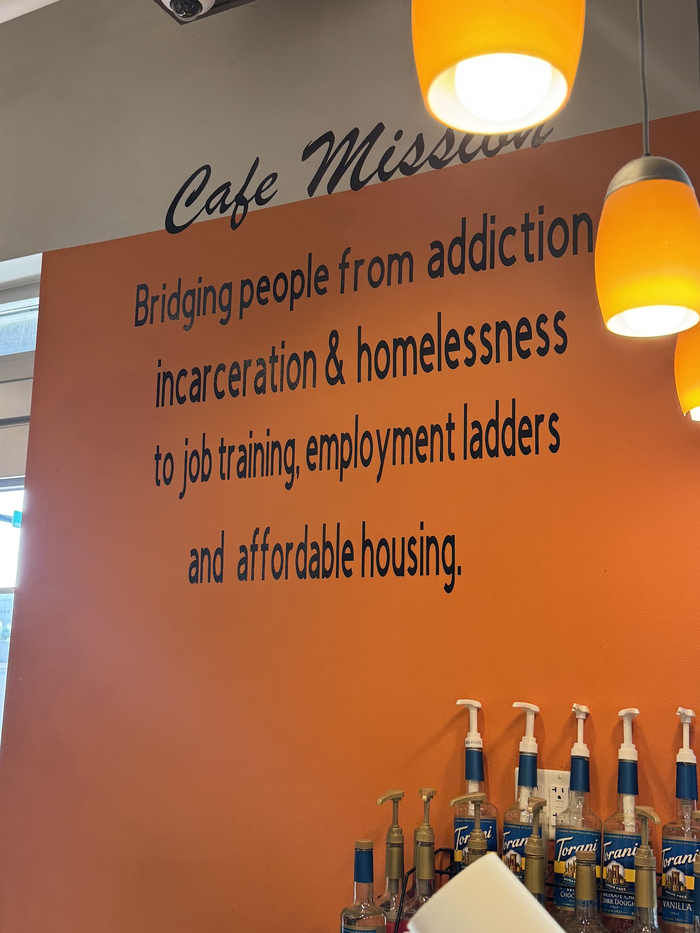 This great eatery and meeting spot champions an important mission to bridge people with addiction, incarceration and homelessness to job training, employment and affordable housing opportunities. We held a community information business meeting in a large room that also serves as the place for Sunday services. Breakfast was great with REAL scrambled eggs, super crisp bacon, container yogurt and really fresh chopped fruit, with freshly brewed coffee and water. Basic, great, and basically great food for our event. They also offer a restaurant with line serving, indoor seating in several distinct areas from high top tables, accessible tables, and comfy sofa settings. They also offer out door seating with accessible tables with umbrellas and free of morning sun. The signage of the delicious menu is posted, yellow background with dark letters, readable and free of glare with a chalkboard sign of todays special, chef salad and more. They list an array of community events, events to support the mission, and fun things to do. I enjoyed seeing the games at the games to play while dining here for breakfast, brunch, or lunch. Accessible entry/exit with manual doors, accessible venue, Accessible men's, women's and family restrooms with grab bars, 5ft x 5ft space. Family restroom has diaper changer. They also have kids high chairs. Accessible van parking in street parking pay by app. Some free parking is available a few blocks away with...