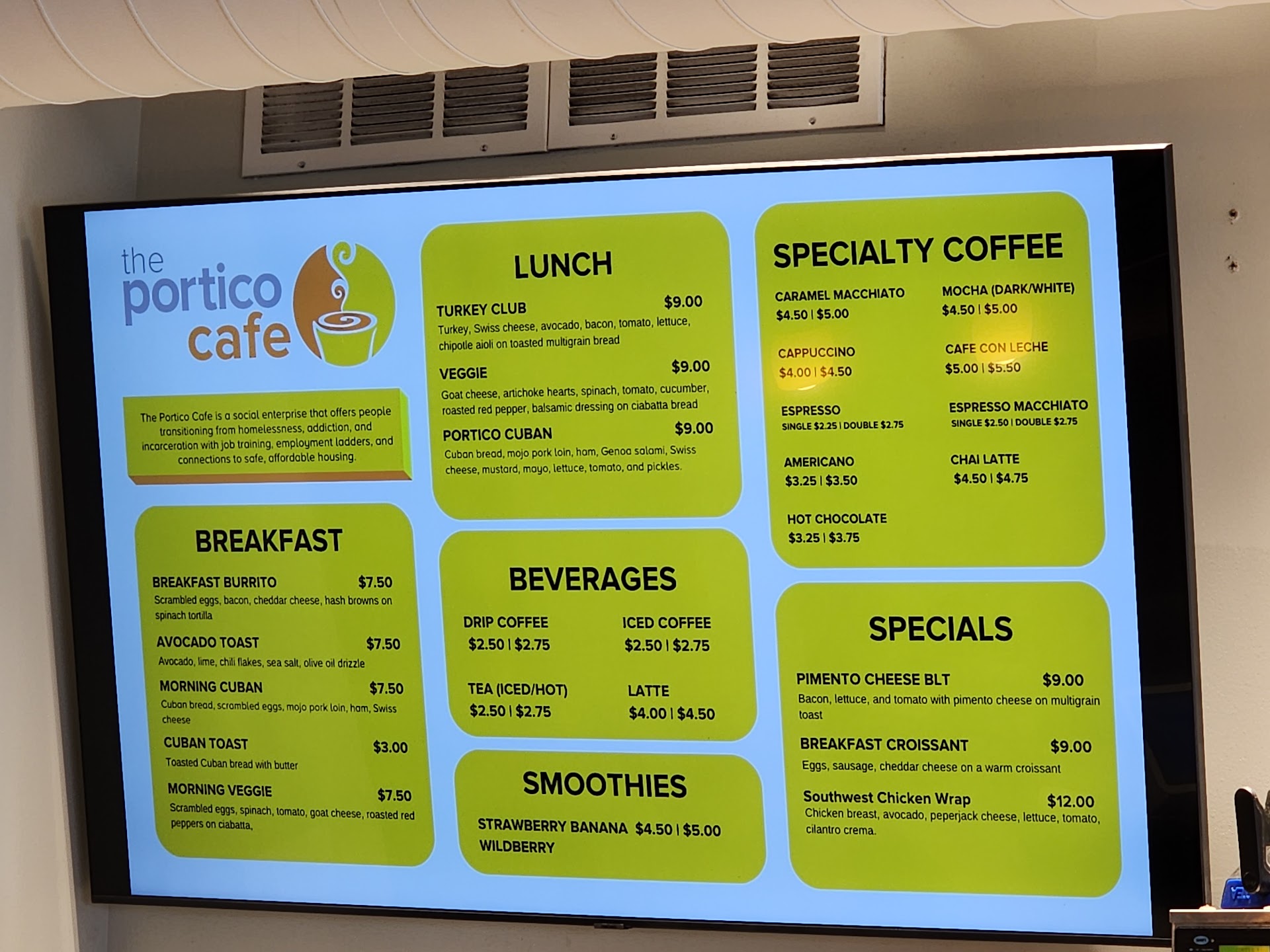 Read moreSo I was invited to this place for a focus group. Which I must say I enjoyed incredibly the portico Cafe was my first time being here. I absolutely love this place I enjoyed the atmosphere the quality of food was awesome although I only had coffee and a couple snacks and this turkey sandwich all which were delicious. It was a breath of fresh air from the other coffee shops that are normally overcrowded and overpriced. I believe the pricing here was fair and reasonable the quality was above average I'm a big coffee connoisseur I enjoyed the coffee here it was fresh with all the condiments that I drink sometimes with my coffee. The overall ambience of the cafe was calm cool and quiet. The restrooms were well cleaned and so was the cafe. I recommend this place to visit just for coffee or the food great people and good atmosphere like I always, four stars for me is the highest I usually give and that's because I believe there's always room for improvement in this case possibly the menu options could have had a little bit more diversity. Overall keep up the good work and I...