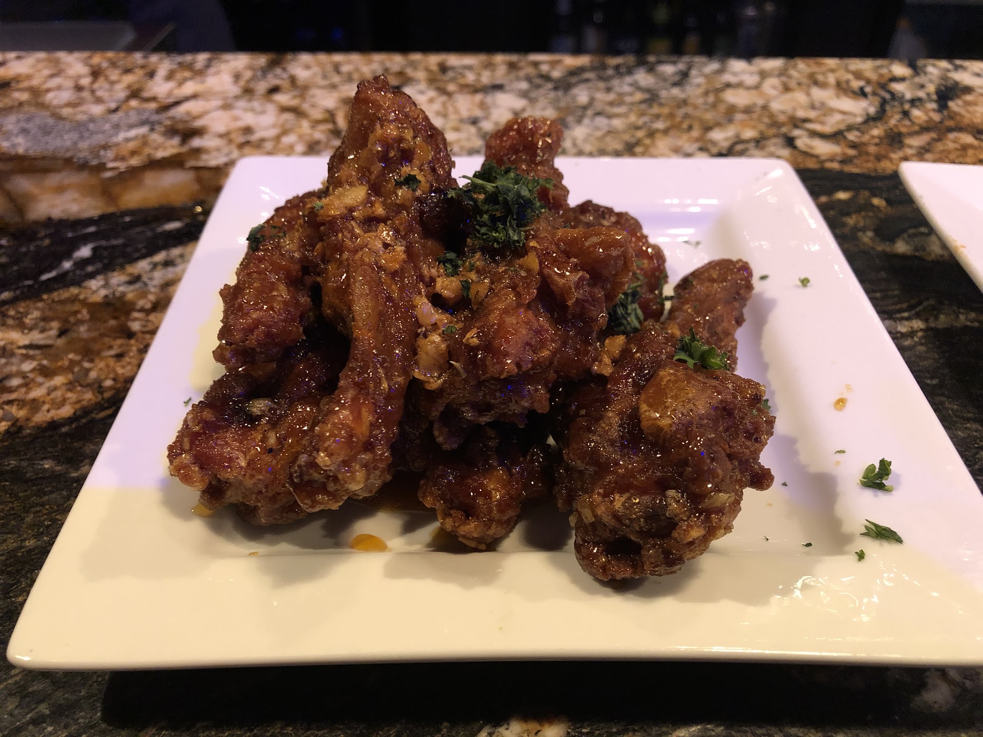 My wife ordered the Honey Garlic Duck Wings and a Caesar Salad, while I got a Chicken Parmesan Slider and a Caesar Salad. The wings and slider came out first and our bartender apologized that the salads were delayed. It really wasn’t an issue.