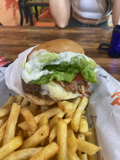 Read moreThe hamburgers I had was the Covid-19 burger. It was really realy good it is essentially a food truck with a covered seating area tha is open ended. There is a seated area but I did have to fight with a couple of flies that thought I liked to share but I was basically eating outside so that was expected. Now the food, the burger came with a big plastic syringe full of a sauce jamed into it so you just fill it up. The burger was delicious, the toppings were fresh crisp veggies and the bacon was cooked not burnt. The fries were really good too but they came to the table cold. They had seceral becerage options I went with a bottle.of water which I know they bought at BJs 24 for $4.69 so.under 20 cents and I bought for $1,69. The burger and fries was $18 so a little pricey. What annoyed me actually was the paying process. They had the terminal that flips over for you to finish the transaction and essentially guults you into tipping. Not really an issue since I tip amyway but this is a takeout place with little service and one of the tip options is 35% which is insane I usually go 20% mindset 1 because it is easy to do the math in my head and 2 I let the service either push it up or down but there is no service here. You are handed a memu when you walk in you go to the registed and then they eith bting you food to ypu or if it's a to go order they put the bag on some metal shelving. The only negative is the price there are plenty of other places in Tampa where you can still get a really good burger and fries to go...