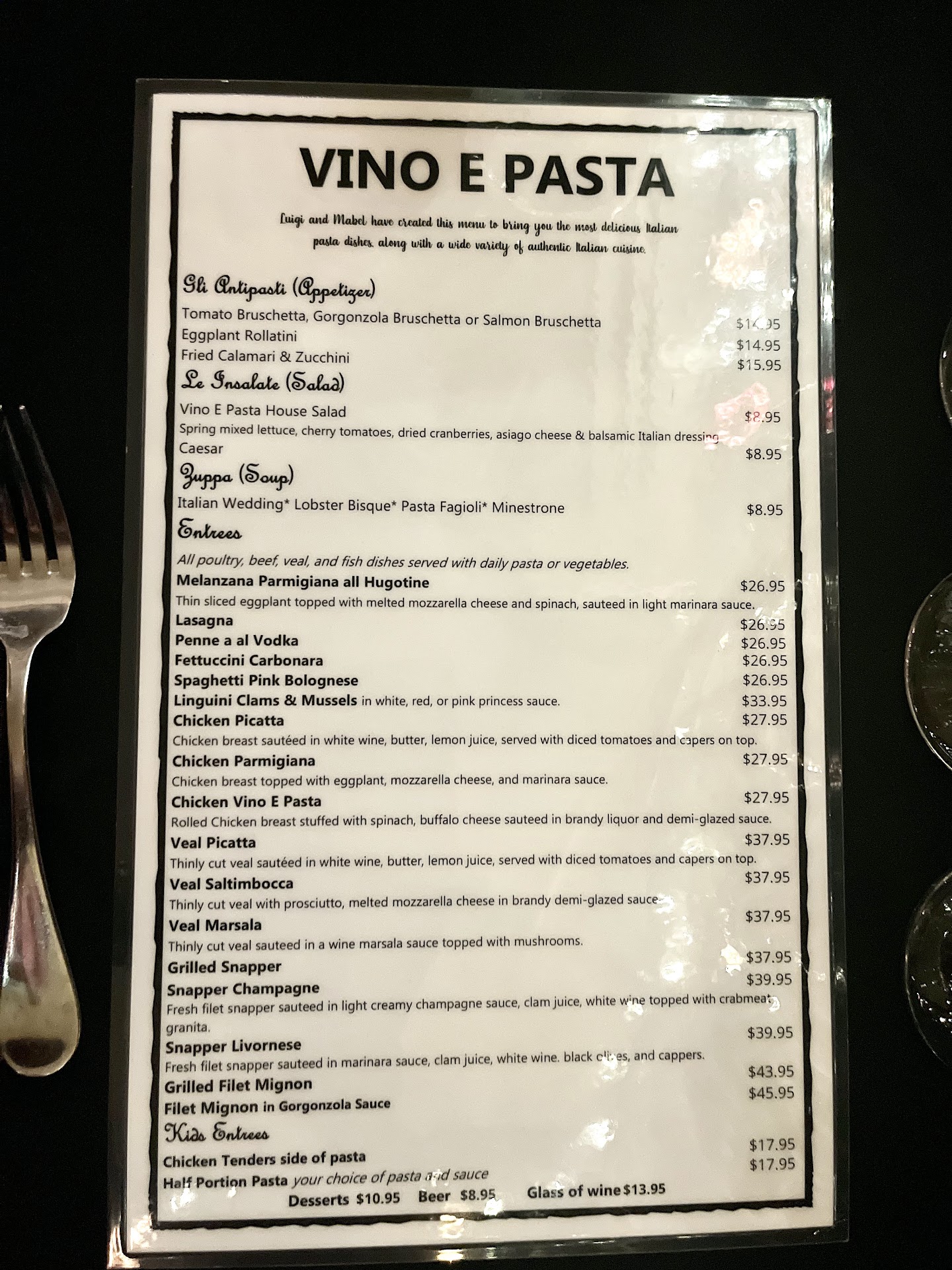 Read moreIn general, we had a good experience at this local Italian restaurant, but admittedly, nothing spectacular. We ordered a couple of calamari and fried zucchini appetizers, and they were great. There wasn’t much zucchini though and a couple of the calamari’s were chewy and possibly undercooked. The bread was great though, and the pesto was fantastic with the bread. For entrees, we had a variety of plates: Pollo Vino E Pasta, Chicken Marsala, Chicken Parmesan, filet mignon, and Veal Marsala. The Pollo Vino was decent, and it was an interesting sauce. The chicken was a bit chewy though. The Marsalas were mixed - one in our party really liked his Veal Marsala, but the other didn’t think the Chicken Marsala was that great. The Filet Mignon was described as decent, in part because it was overcooked. The Chicken Parmesan was okay, but wasn’t anything to write home about. Perhaps the best part of the meals (by overwhelming group consensus) was the pasta of the day. It was delicious and had an excellent sauce. For service, our server seemed distracted or nonchalant about everything. Service by everyone else though was great overall, as the food runners, beverage servers, and others were attentive, polite, and accommodating. They definitely tried their best to make sure we had an excellent dining experience. Overall, we had a pretty good dinner celebrating a couple birthdays in our party, and nothing about our visit would necessarily stray us away from...