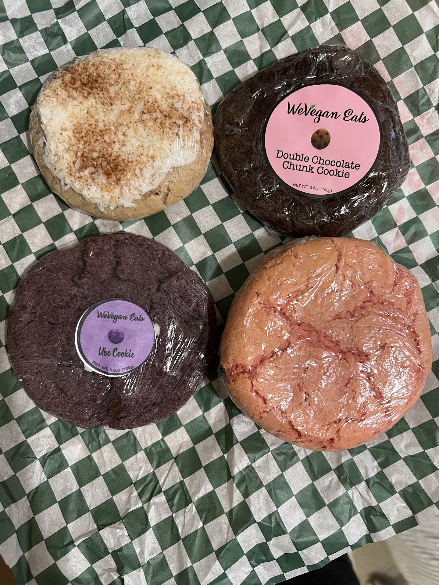 The cookies appear to be packaged well and insulated. Each cookie was wrapped in cling film. They all appear to look good with no signs of discoloration or mold (thank goodness!). Most still felt soft except for the ube cookie which didn’t taste all that great either. They lay the icing on thick! It is so sweet. Too sweet. The sweetness is overwhelming. I had the ube, double chocolate chunk cookie, coquito, and strawberry cookie cream sandwich. The coquito and strawberry come with the icing. You’d get a sugar rush headache. The double chocolate is soft but crumbly and on the bitter side of bittersweet, and doesn’t have enough chunks for sure. The coquito tasted the best, but the icing is also really sweet. I don’t think I would order again. The cookies are just okay, they didn’t astound me, and customer service was nonexistent, and it took a long time- 15 days from order to delivery. I’ll stick with local vegan cookies from now on. Also, it came with a storage and reheating sheet with cookie type and ingredients panel. And a best by date. My sheet said best by Nov 23, 2023 and it’s December 20, 2023. Even if it was meant to say 12/23, that’s only three days out.