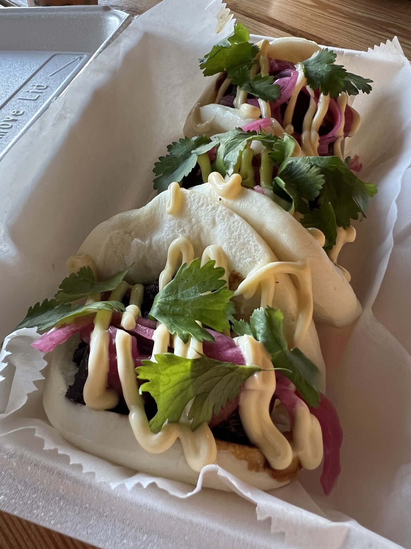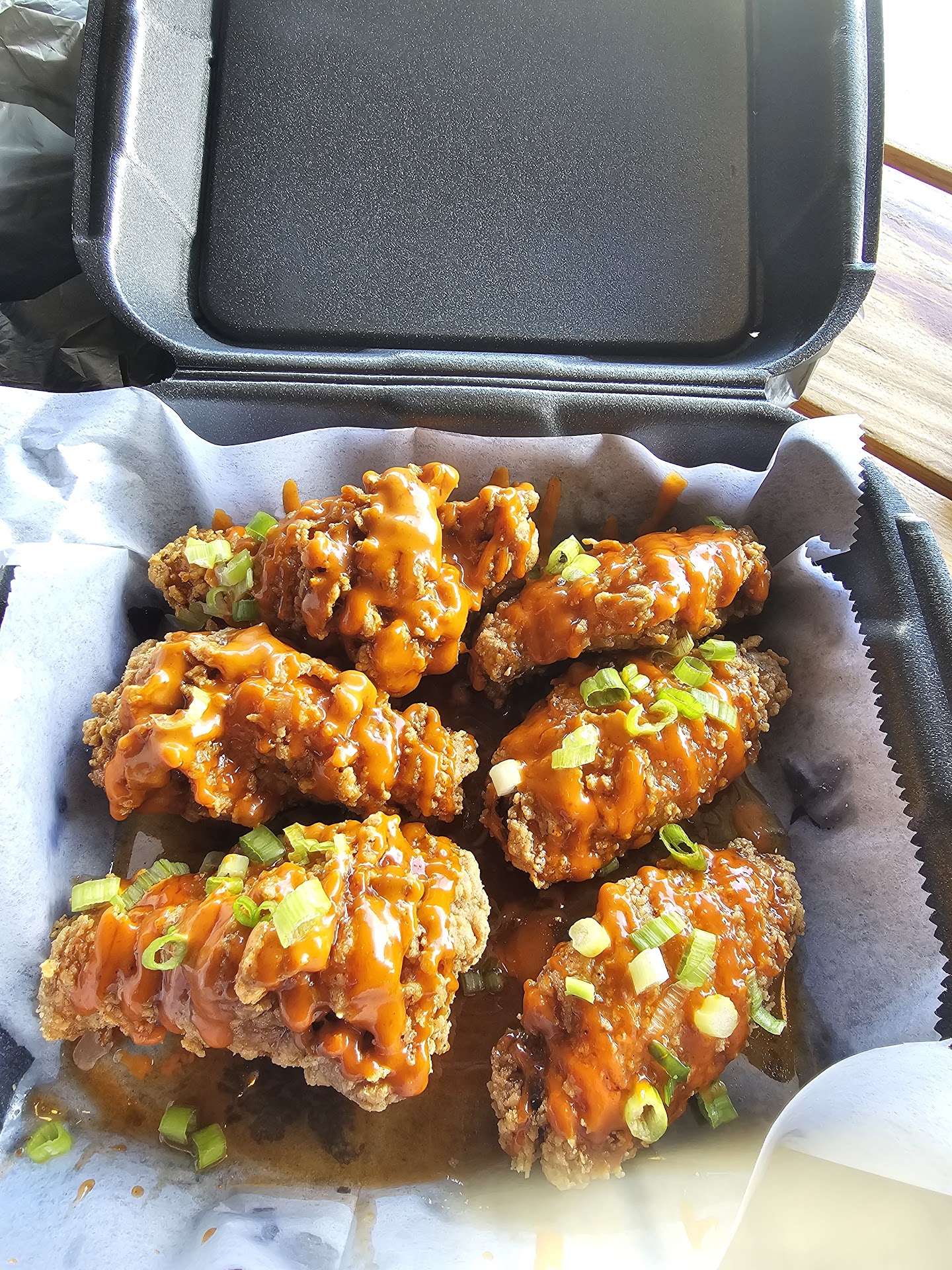 Read moreI went on a lunch date with my gf. The venue is outside but covered. Several chiller fans do just enough to make eating on a hot summer day like today more comfortable. This was our first time here, and Anya gave us some great suggestions. She made sure we had everything we needed. We had wings, a chicken bowl, pork belly bao buns, & desert pear teas with lychee. Overall, the food was good. The service was great, and we were hesitant to try the mushrooms, but we were pleasantly surprised by how good they were. The chicken bowl was our favorite; it was well seasoned and had a great pairing of flavors. Anya’s suggestion to try the Desert Pear tea was the cherry on top! I highly recommend giving it a try if you like...
