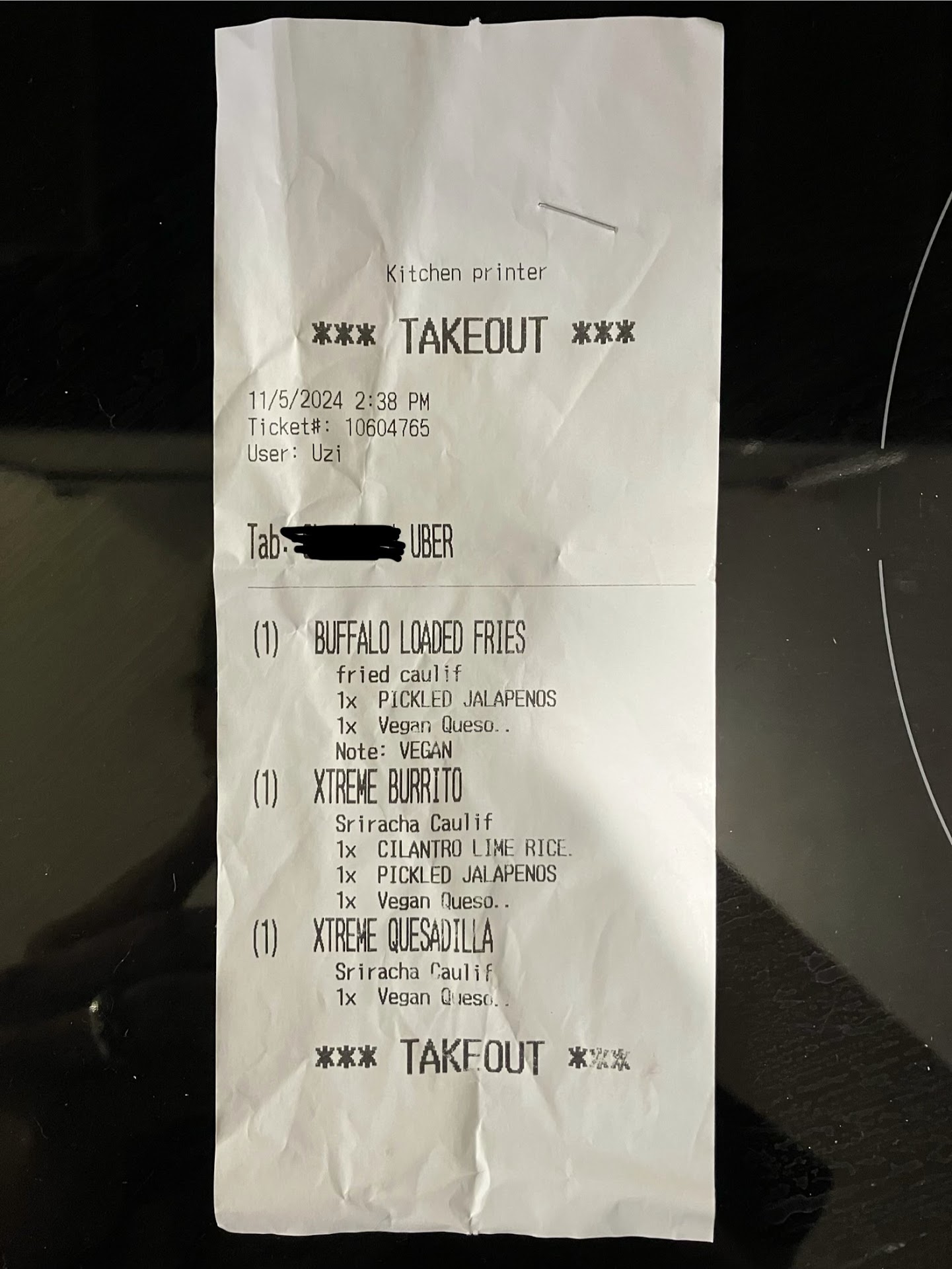 Today I asked my wife if she had followed up with them and suggested she call the restaurant for help resolving the issue. She decided to call them, and much to my surprise one room over, the person she spoke with didn't seem interested in helping at all! My wife was told that they didn't have vegan cheese yesterday and that she shouldn't have been able to order it. Our receipt says otherwise, and the employee receiving our call decided to double down. With that, it's with a heavy heart that this establishment has been removed from lives.