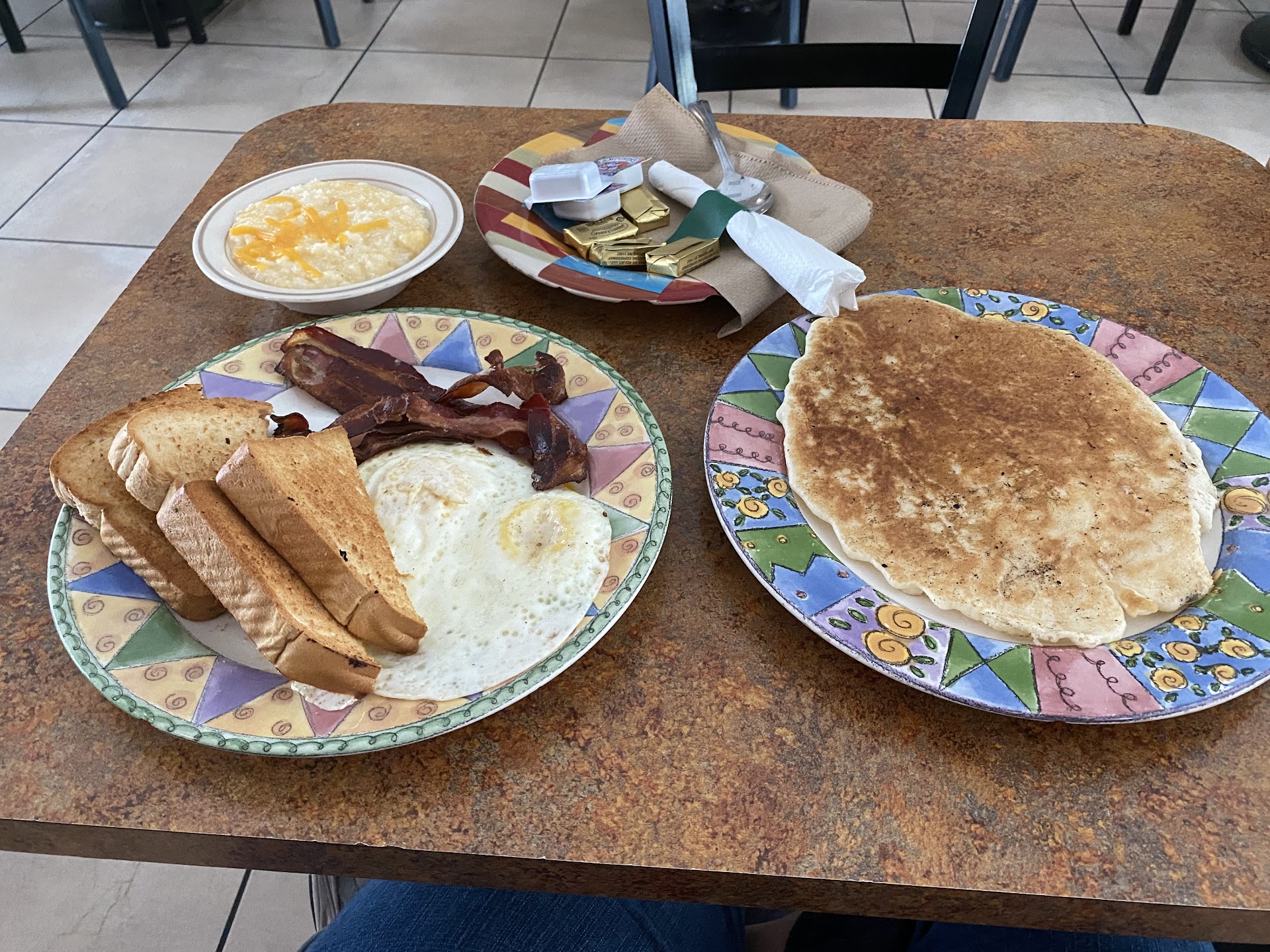 Ā Ā Ā Read more"We went here for Jamaican food. We didn't see any on the menu and our waitress told us that everyday they have different specials and today they had jerk chicken. Obviously that's what we ordered at 8 $ a plate. We did wait a while for our food, but I was fine with that. The cafe is nicely decorated and clean. You can dine in or order out as well as patio seating. You can also order breakfast any time of day. The portions are large. The jerk chicken was superb served with red beans and rice and veggies. I did not really like the assortment of veggies, but next time I will try the potato salad instead. The jerk chicken was soft and could be pulled apart with your fork. Well seasoned. The only thing I did not like is that I got part of the chicken back and it had lots of little bones that broke off into the jerk sauce. Either way this place is excellent and I will be back for more specials as well...