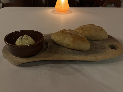 The bread is fare at best, and the butter needs more salt and the rolls are hard. They could toss them in a steamer for 30seconds.