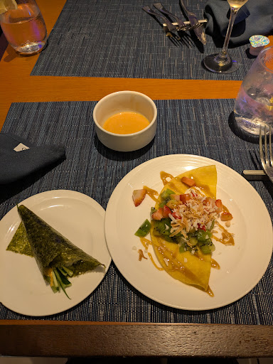 I tried to sample as much as I possibly could going up about 7-8 times. Here are some of my notable food reviews: • Lobster Bisque: 10/10 must try. First time having it and it was supreme. • Grilled Salmon: Honestly, some of the best prepared salmon I've had. Very good, very flaky, and seasoned very well. • Crepé Bar: Whether you're looking for sweet or savory, the crepé bar did not disappoint and I'm happy I tried it. • Short Ribs: Very good although majority was simply fat and chewy. • Sushi Bar: I only had 3 California rolls along with a hand-rolled sushi roll. The California rolls were excellent. The hand-rolled sushi was very good although the seaweed wrap was very tough and chewy. • Seafood: For exotic eaters, I would recommend trying the Mussels, Jonah's crab, and Snow Crab. All of these were very good and my first time trying - personally, the mussels didn't have too much of a taste and look scarier than how they actually taste. Jonah's crab claws were good, although didn't have much meat and were hard to break into without proper crackers. Snow Crab surprised me and were quite good, having more meat than I expected.