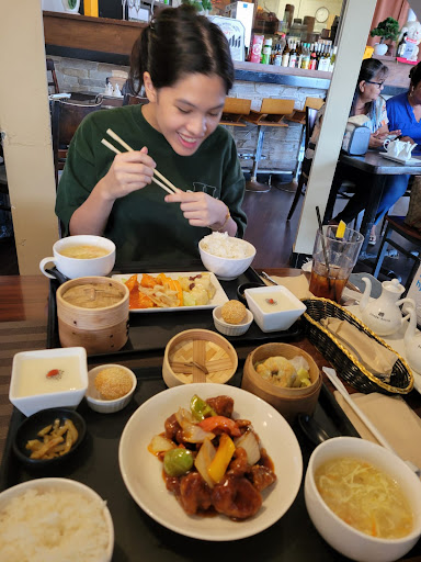 I immediately liked the stylish interior and furnishings. We ordered their lunch set, it includes the main dish, 2 dim sum, 2 desserts, soup, and a bowl of rice. It was a delicious set and satisfied my appetite! We also tried their different dim sum sets, I liked their pork shu Mai and sesame seed balls with red bean filling. The wait staff were friendly and attentive. Overall lunch was enjoyable! For dinner, the menu was ala carte. Rice is a separate item, so each person a bowl of rice is charged. Their meat selection is beef, pork, duck, seafood (shrimp, lobster). No chicken. My son ordered sweet & sour pork; he didn't like it because the pork was fried too crispy/crunchy, and the sauce had a strong vinegar taste. I enjoyed the fresh lobster in black bean sauce. Although the lobster was small delicious. As always the dumplings...