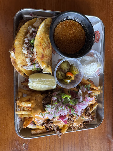 Read moreWe ordered the crab Rangoon nachos, the baoboy combo plate, and the quesabirria taco plate. The crab Rangoon I think is good for three people or more if it’s going to be eaten as a side. I didn’t read the menu thoroughly and was surprised that the “nachos” were actually wontons. I think it could adjust the sweetness just a tad bit since the imitation crab is already sweet. I loved the crunch and creaminess, just need to adjust the sweetness a bit down for perfect balance. The bao was surprisingly good, I would order the 4-piece single order next time because 2 baos is not quite enough 😅. The sisig filling of the bao was really good also, it’s just it did drip out a fair amount of lard which is natural due to cooking the pork renders the fat out. I just wanted to point that out for those avoiding oily food. On the bright side, at least the it’s juicy 🙃. Honestly the birria I didn’t get to eat because I was so stuffed. But judging by the color of the tacos, they grilled the tortilla on cheese after dipping it on the consommé fat - just as a true birriería does. Also, plus for being able to have done peppers on the side. It makes it good for sharing among friends with different spice tolerance. Would come back for sure. Also — service was good and...
