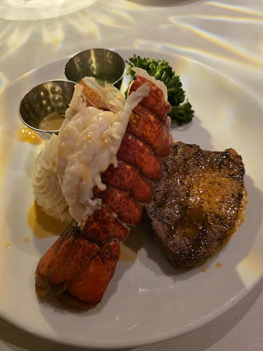 ย ย ย Read moreI was able to make a last minute dinner reservation online. Parking was hard to find because of the Sunday night market down the road. Service was good. Our drink order was taken right away and given quickly. I ordered the surf and turf: lobster and filet mignon, cooked medium rare. It was pretty tasty with the chimchurri sauce. Had a little wasabi or horseradish kick. The veggies were nicely cooked. We also ordered the mushroom risotto which is really good, a bit salty but I enjoy the earthy taste of the mushrooms. I could eat it without any salt added (maybe for next time).