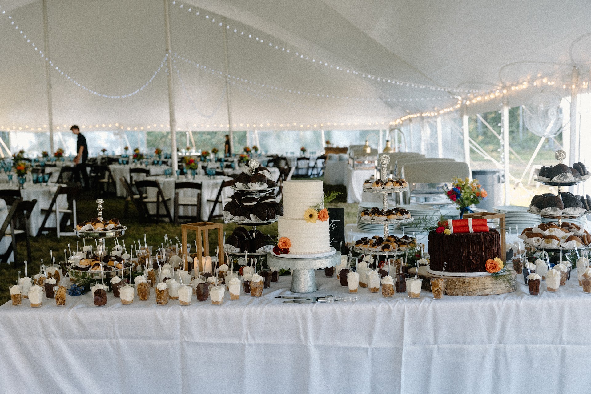 Taste: The desserts were nothing short of spectacular! Each treat was bursting with flavorâour guests couldnât stop talking about the mini desert shooters, cream puffs, and the whoopie pies. For our bride and groom wedding cakes the layers were moist, and the frosting was perfectly balancedânot too sweet, just the right amount of creaminess. We also appreciated that they offered gluten-free and vegan options, which made all of our guests feel included.